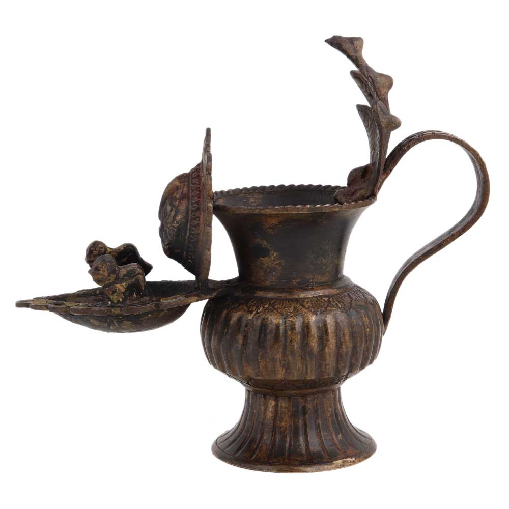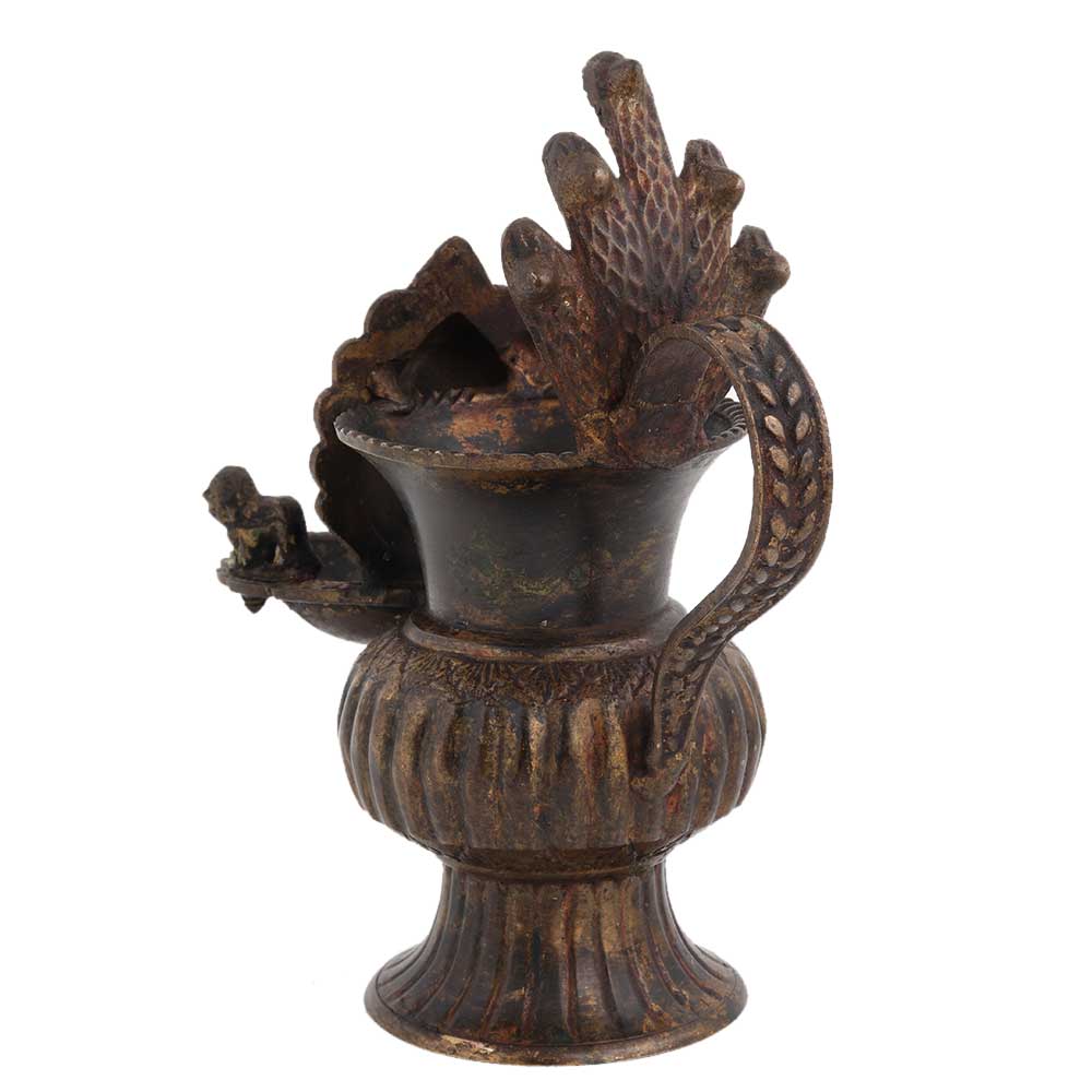 Brass Nepalese Oil Lamp With Ganpati Cobra Hood Pear Shaped