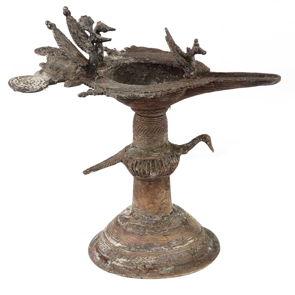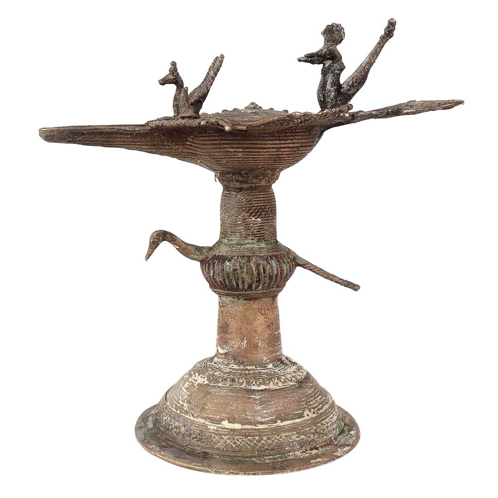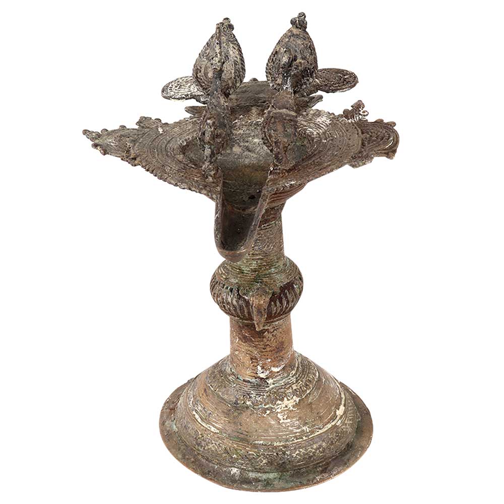 Handcrafted using old lost wax technique primarily practiced in Orrisa and West Bengals by the local or tribal artisans. In this technique the molten wax is poured into desired clay mould and when the wax melts the clay is broken and we get the desired metal object which is further polished to perfection. The Deep Cup Can Be Filled with Oil and Light a Cotton Wick. Diyas/ Oil Lamps are Considered Auspicious as in Hindu Religion. It is detailed with Elephant and Peacock Animals with Beautiful Details.