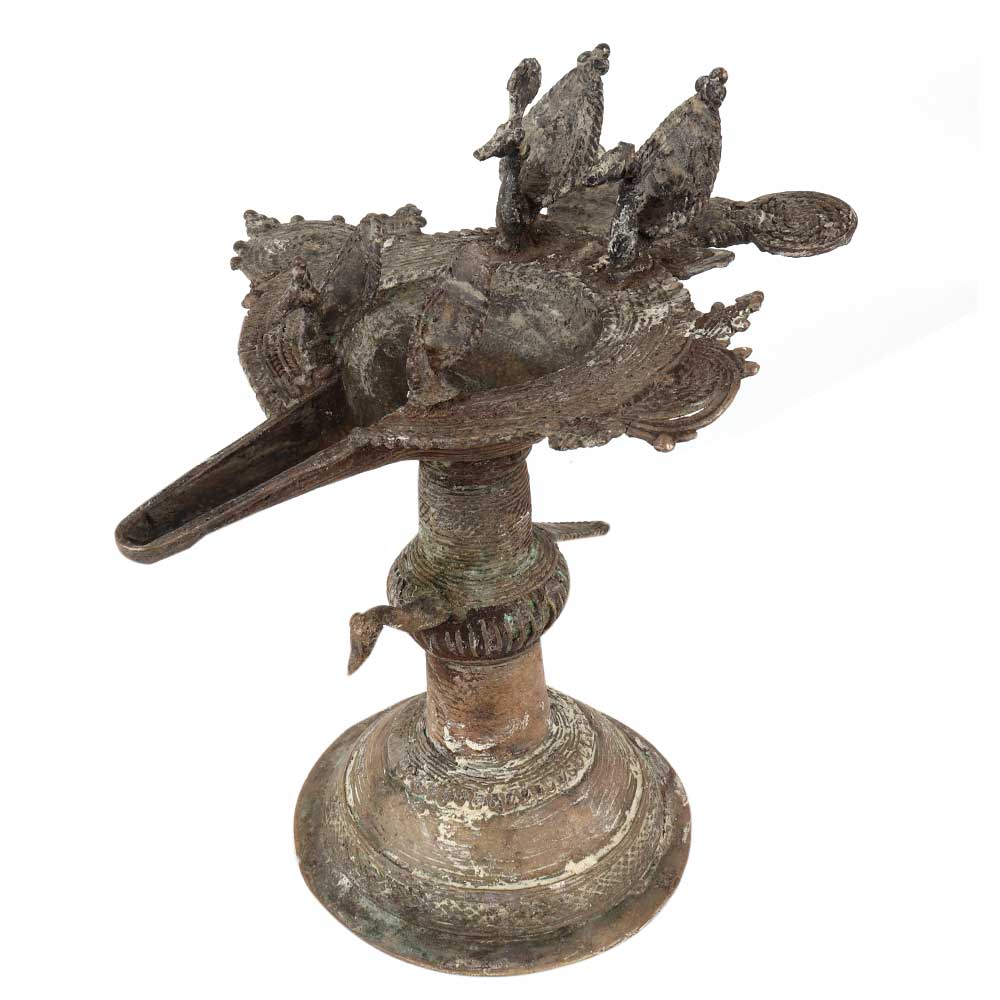 Brass Oil Lamp Diya Deepak With Peacock Figurines