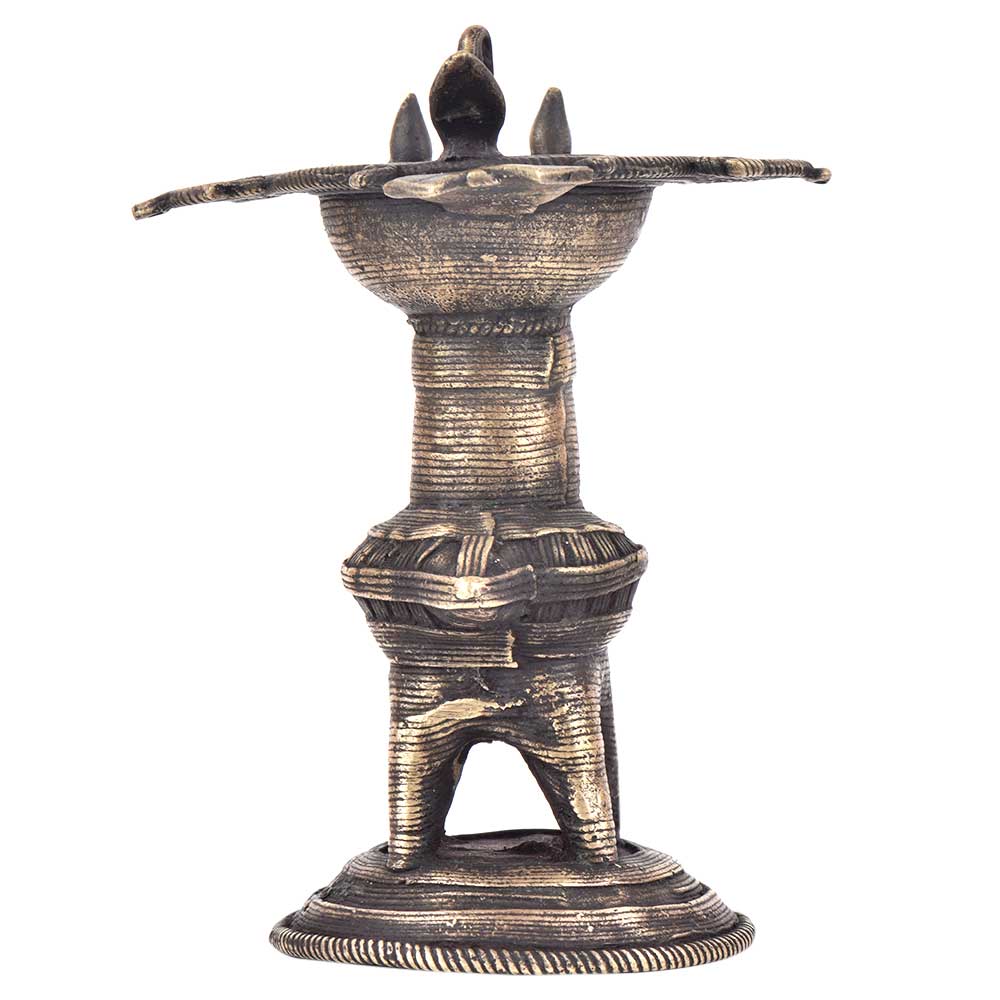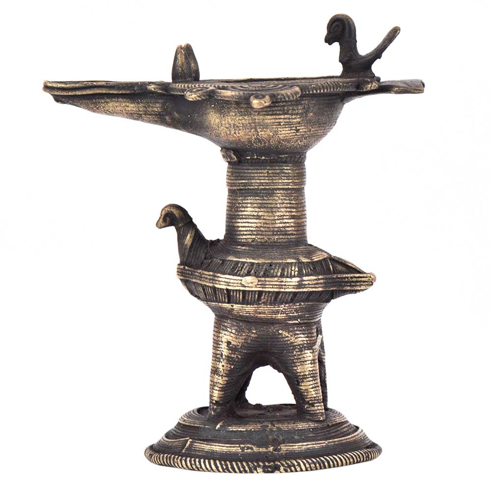 Handcrafted using old lost wax technique primarily practiced in Orrisa and West Bengals by the local or tribal artisans. In this technique the molten wax is poured into desired clay mould and when the wax melts the clay is broken and we get the desired metal object which is further polished to perfection. The Deep Cup Can Be Filled with Oil and Light a Cotton Wick. Diyas/ Oil Lamps are Considered Auspicious as in Hindu Religion. It is detailed with Elephant and Peacock Animals with Beautiful Details.