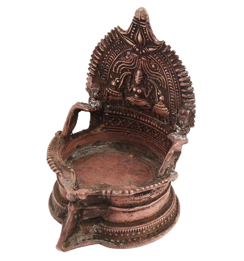 Brass Oil lamp with gajlaxmiand two jumbo elephants with fine engravings and a storage diya that can be filled with oil , ghee with a single wick. Diwali function, engagement, inauguration ceremonies, family functions, religious ceremonies etc, gift for your near and dear ones.