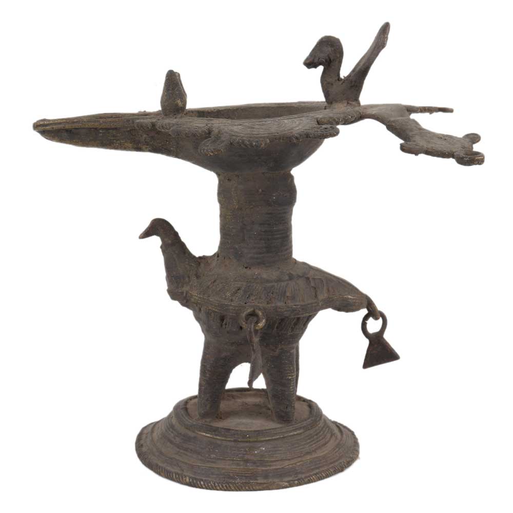 Brass Oil Lamp From Orissa Work Bird Figurines