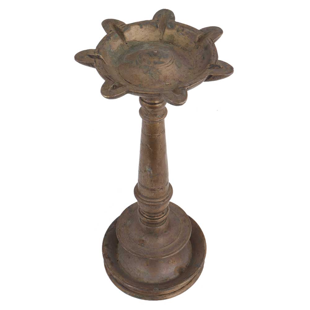 Brass Oil Lamp Segmented South Indian Lamp with oil container mounted on a stand is made by the expert craftsmen of India. hotel, restaurant, spa, wedding stage, inaugural function . Wedding gift, Anniversary gift, stage decoration, house warming gift or souvenir.