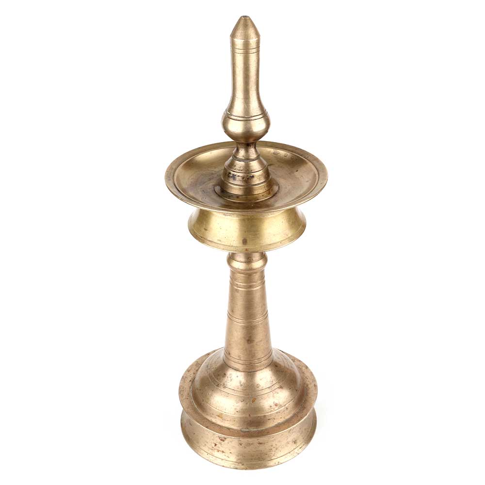 Kerala Nilavilakku Brass Oil Lamp. It Was Made by Lost Wax Process. Adds Spiritual Flavor to Your Decor. Vegetable Oil, Mustard Oil or Desi Ghee can be Use to Light the Lamp with Cotton Wicks.