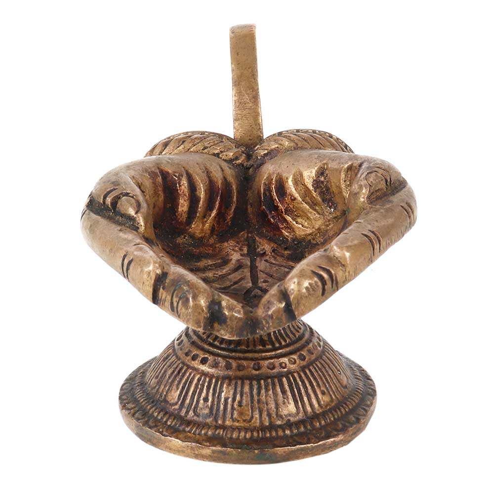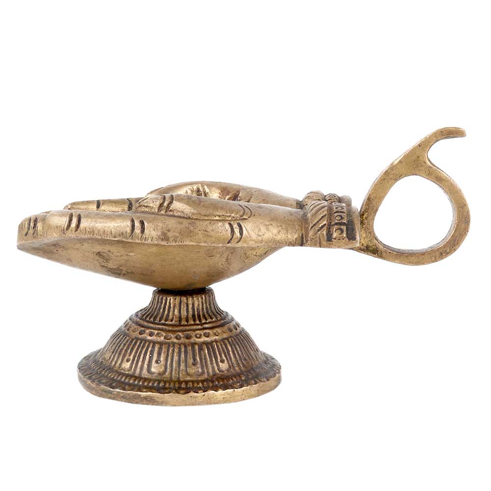 A Very Traditional Looking Oil Lamp with Two Hand Holding It With A decorative Stand And a Handle . It Can Used as a Decoration for the Display Unit or can be Use in the Puja, During Traditional Functions or Ceremonies. a Great Gifting Option Too.