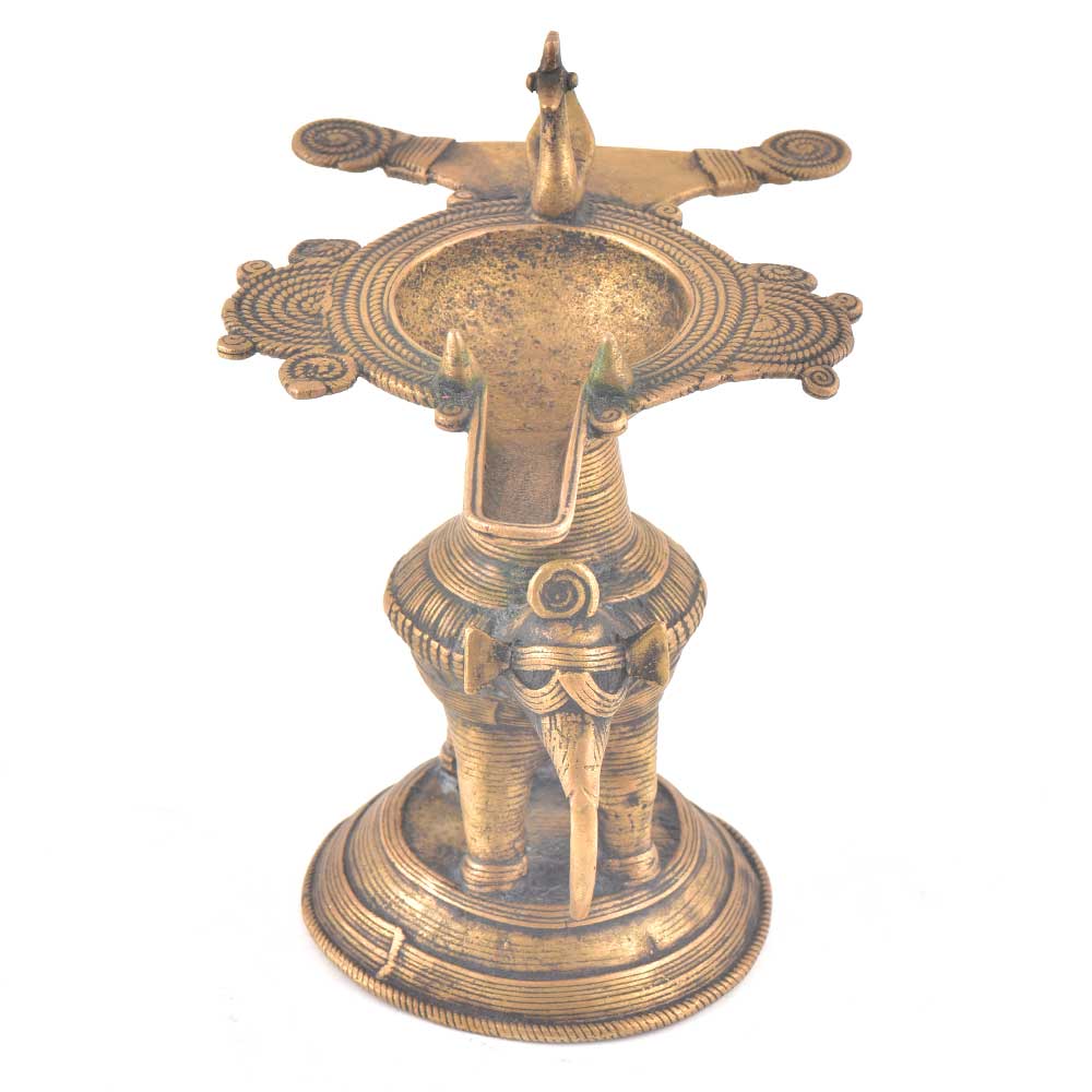 Brass Oil Lamp With peacock and Elephant Figurine