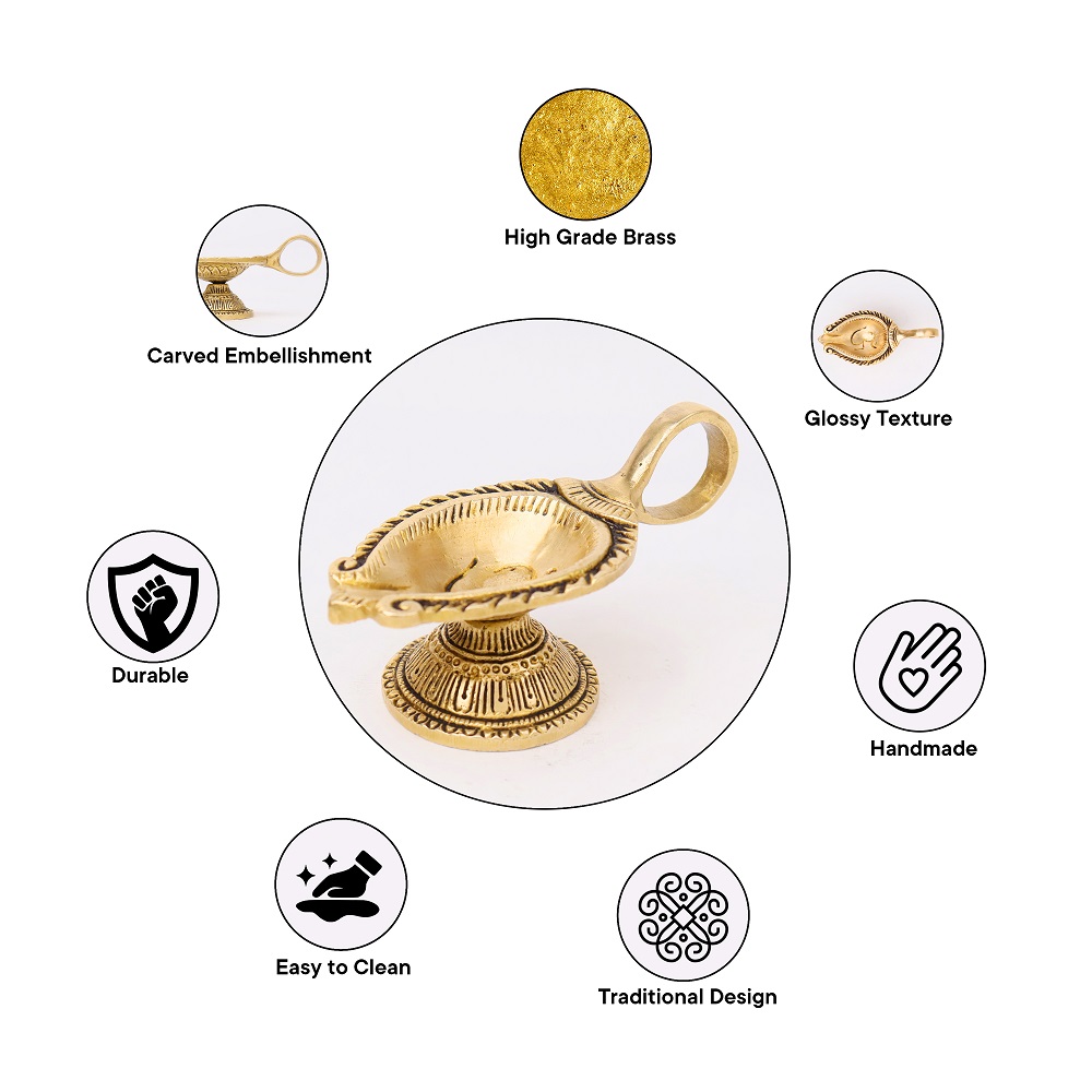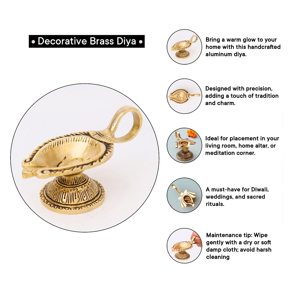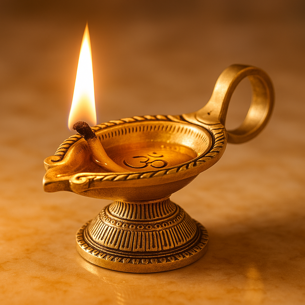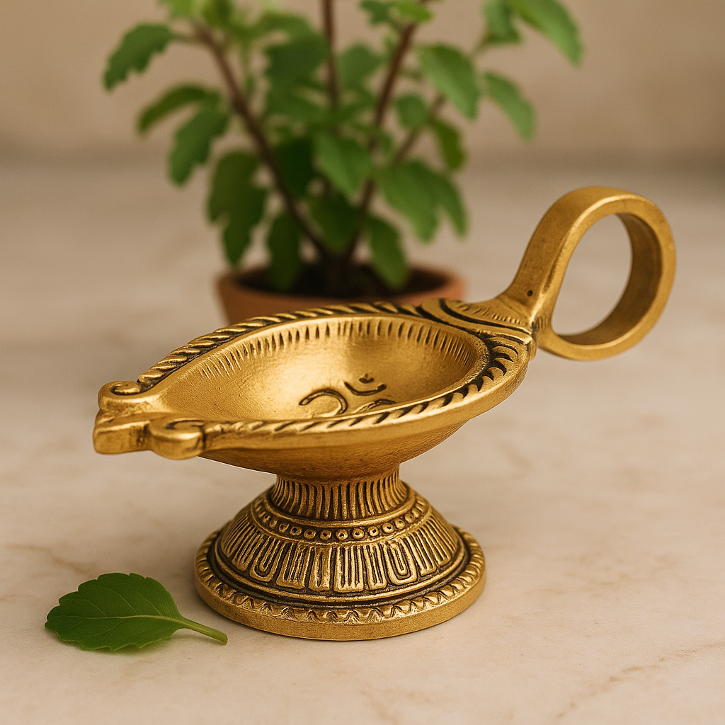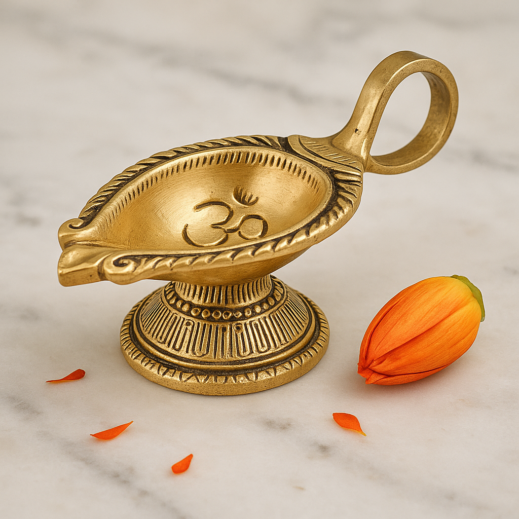 Illuminate your sacred space with the divine energy of the Brass OM Carved Temple Diya Lamp. Crafted from pure brass and polished in a golden finish, this diya showcases the revered OM symbol – the universal sound of creation and spiritual harmony. Its tall, temple-style form makes it a centerpiece for mandirs, festivals, and daily prayers, filling your home with light, positivity, and devotion.