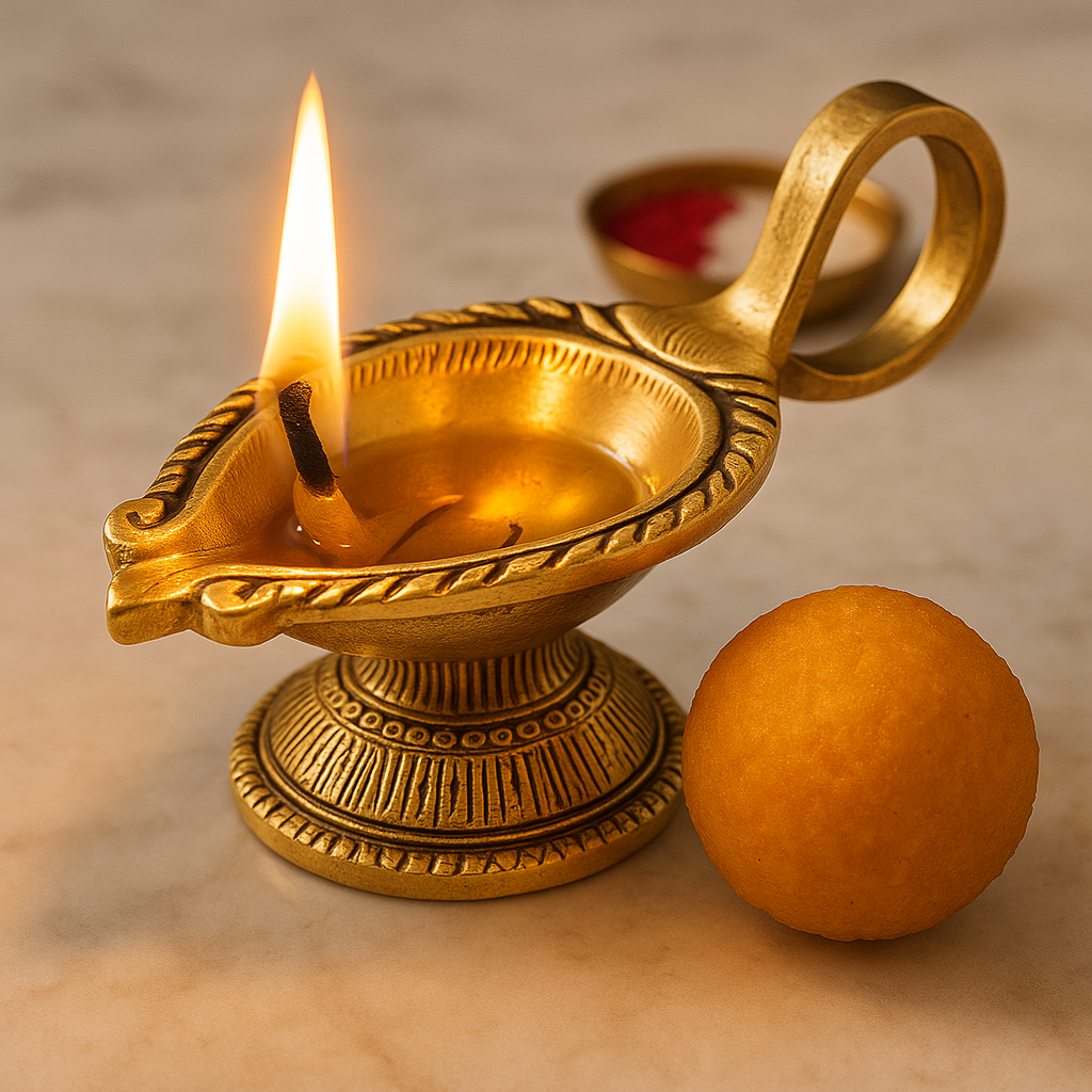 Traditional ghee, mustard oil, or sesame oil are ideal for puja lighting.
