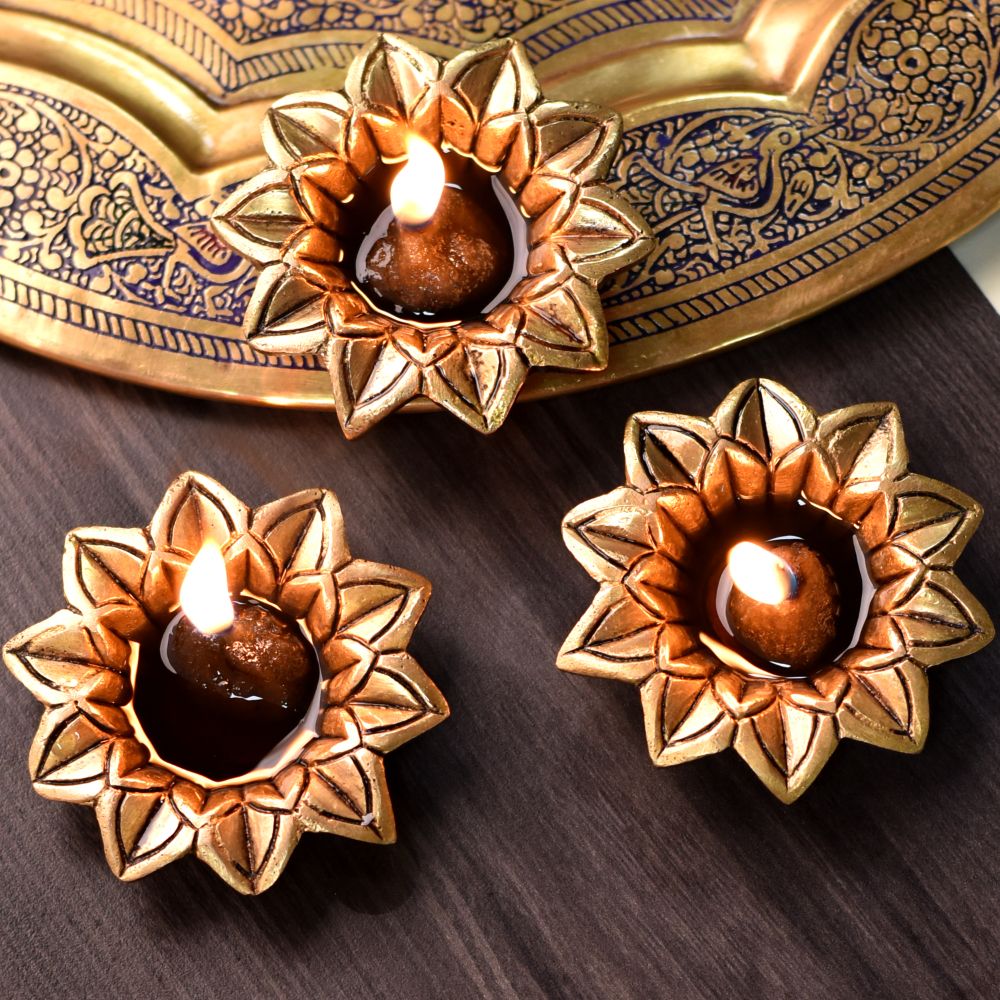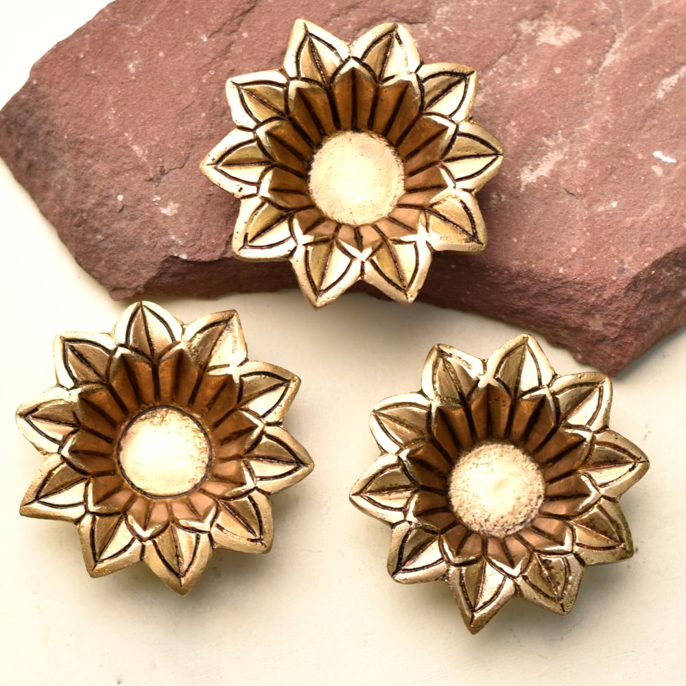 Bring divine light and floral elegance into your home with this Brass Open Flower Shape Diwali Diya. Crafted from solid brass with a polished golden finish, it features an open flower design symbolizing purity, devotion, and prosperity. Compact yet artistic, it is ideal for Diwali decoration, daily puja, and as an auspicious spiritual gift.