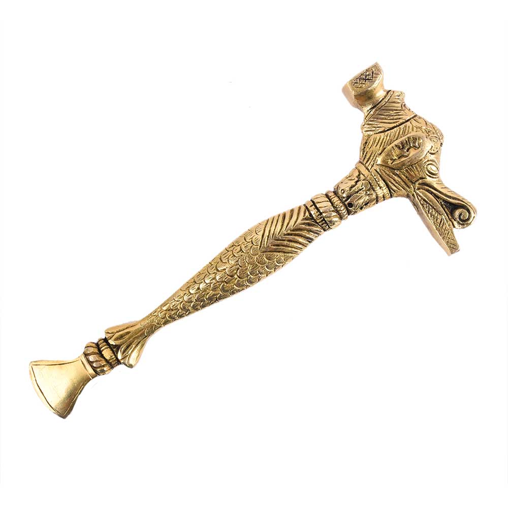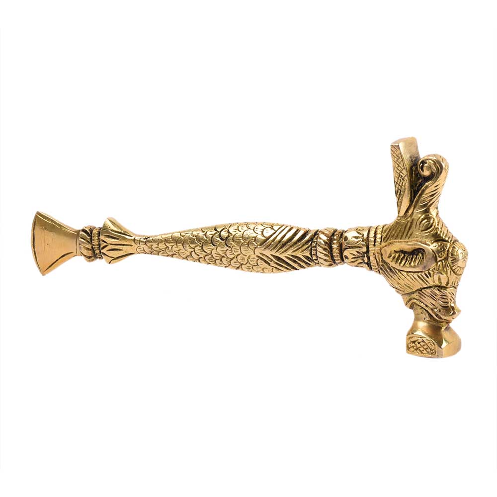 Indianshelf.com for bulk/wholesale orders.Indianshelf.us for personal purchases.The Brass Ornate Hand Carved Elephant Head Hammer or Paper Weight is a remarkable piece of craftsmanship that blends artistry and utility. Expertly hand-carved and forged from high-quality brass, this versatile item serves as both a striking paperweight and a functional hammer, making it an exceptional addition to any desk or display. The intricacy of the elephant head design, paired with the sturdy brass material, brings an aura of strength, wisdom, and elegance to any space.