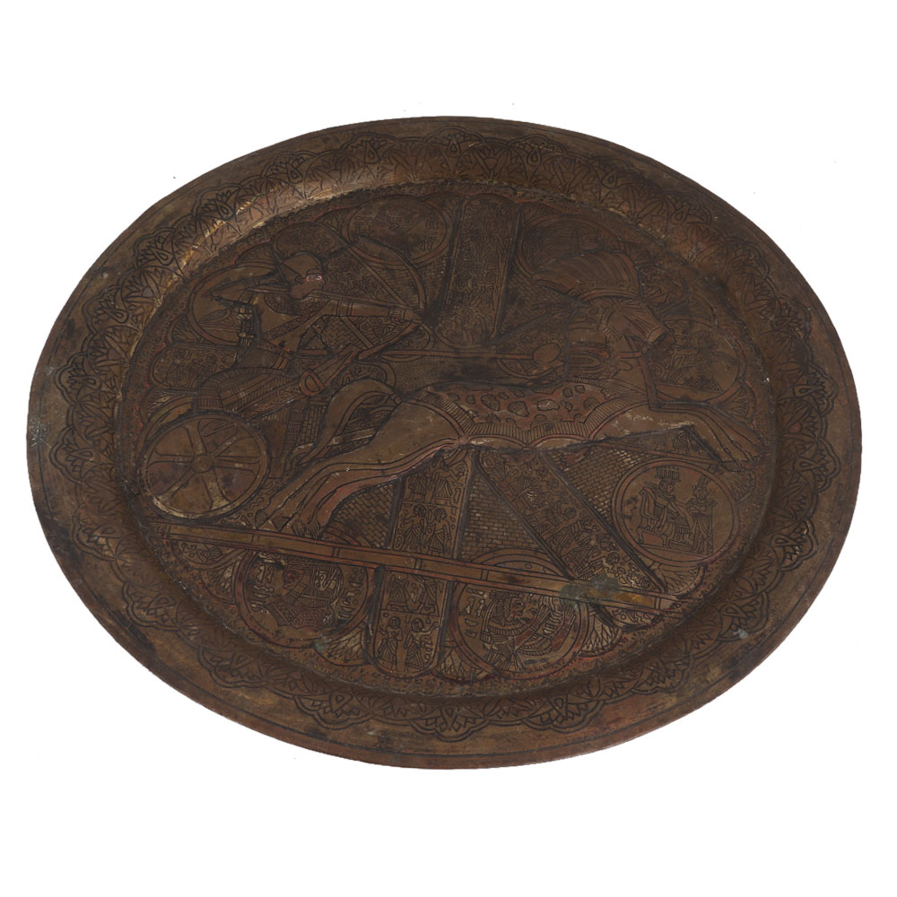 Brass Oval Egyptian King Hunting Rider On Horse Wall Hanging Plate
