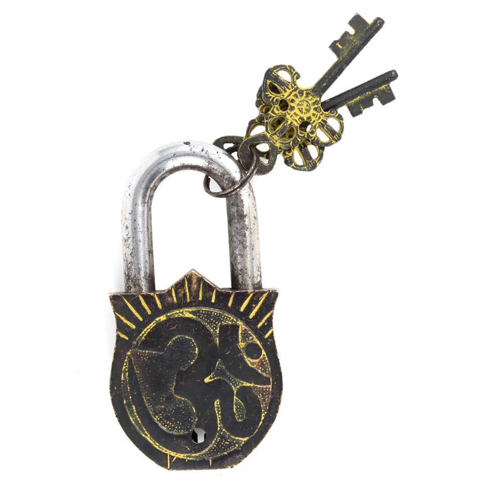 Brass Padlock Ram Durbar With 2 Decorative Keys Painted With Yellow Color