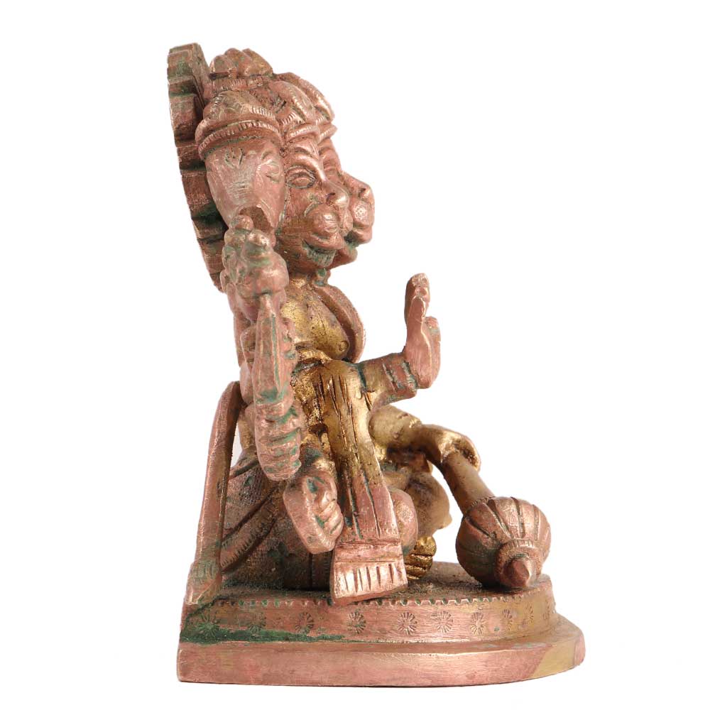 Panchmukh Hanunmanji brass idol adds vintage style and spirituality to your home. Lord Hanuman symbolises joy and happiness, which is symbolic of prosperity and good fortune. Hanuman is the monkey commander of the monkey army in Hindu mythology. Hanuman led the monkeys to assist Rama, an avatar of the god Vishnu, in retrieving Sita from the demon Ravana, king of Lanka. Lord Hanuman represents pure loyalty, complete surrender, and the absence of ego or the lower self.