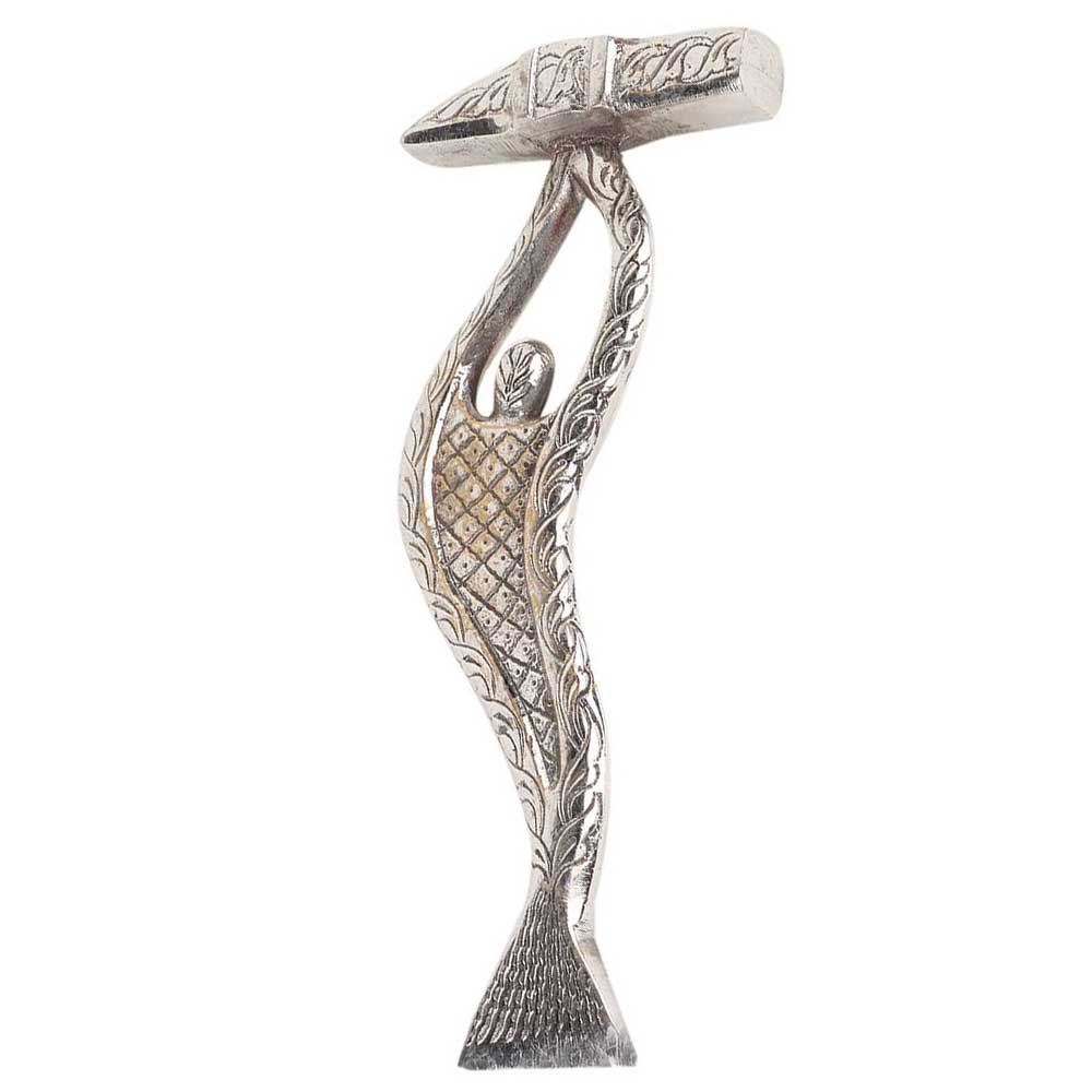 • Brass Paperweight Nickle Plated Carved Hammer Abstract Figurine