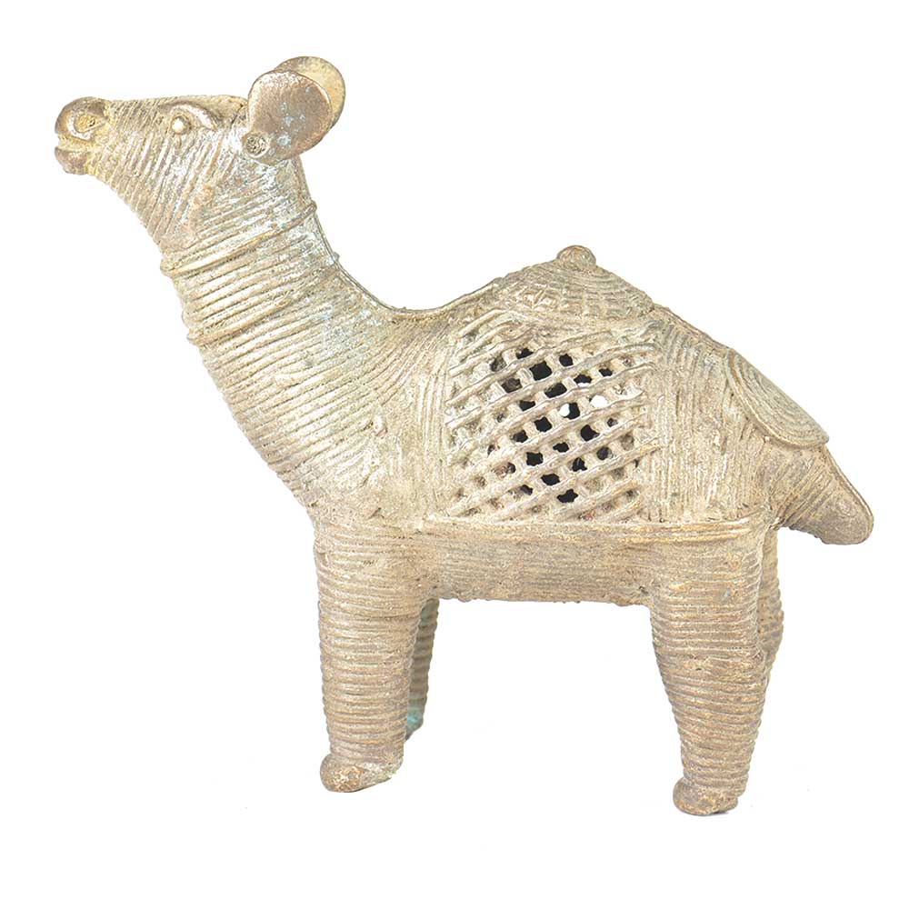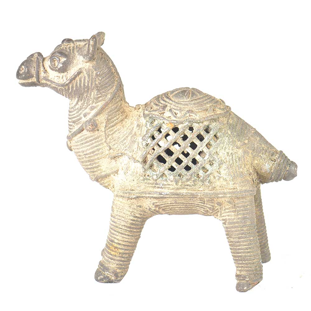 Camel incense stick holder made of brass by the tribal craftsmen and it has a rustic look. This camel is beautifully made and a hump can be seen on his back.