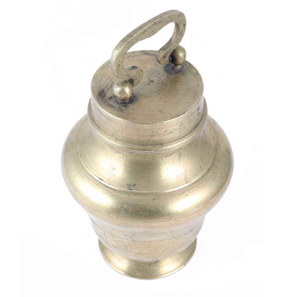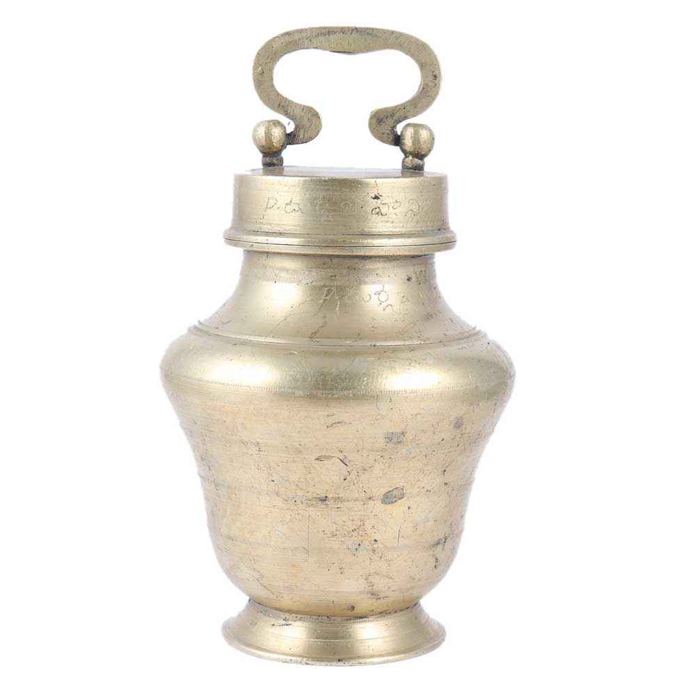 The ladies of the family used this traditional brass vessel in the shape of a pot with a lid to hold holy water to be brought to temples for doing puja. It is a great gifting option for near and dear ones, as it is made by Indian artists with very great quality brass.