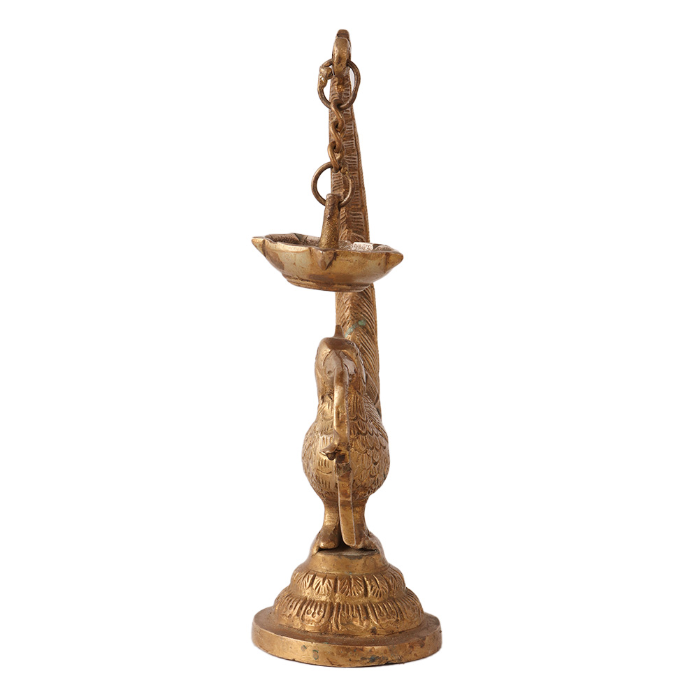 A diya is a customary oil lamp with a handmade bird design made of brass. The diya is an oil lamp that burns vegetable oil or ghee Indian butter and has been used as a decoration and a source of light since ancient times. Once the lamp is full, you insert a cotton wick and light it to illuminate the space. Festivals include the use of the lamps. Additionally, you can use them as decorations in your home's living room or bedroom, or you can use them in place of candles on a dining table. This stunning and exquisite sculpture is ideal for your home's interior design. It is made of brass with an aged appearance. It's an exceptional keepsake for your home. This Deepak or Diya design is more than just a Diya; it's a multifunctional decorative accent for all contemporary homes. The lovely diya is brilliant and lovely for any temple or house.