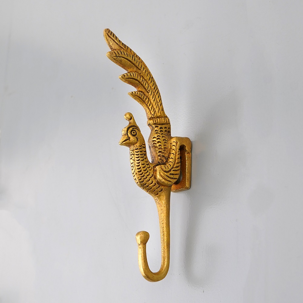 Indianshelf.com for bulk/wholesale orders.Indianshelf.us for personal purchases.Enhance your space with the Brass Peacock Coat Hooks Hanger, a stunning blend of elegance and practicality. Adorned with a beautifully detailed peacock motif, this coat hook is ideal for those who appreciate both style and functionality. Whether placed in your entryway, hallway, or bathroom, it provides a sophisticated solution for hanging coats, bags, or towels effortlessly.