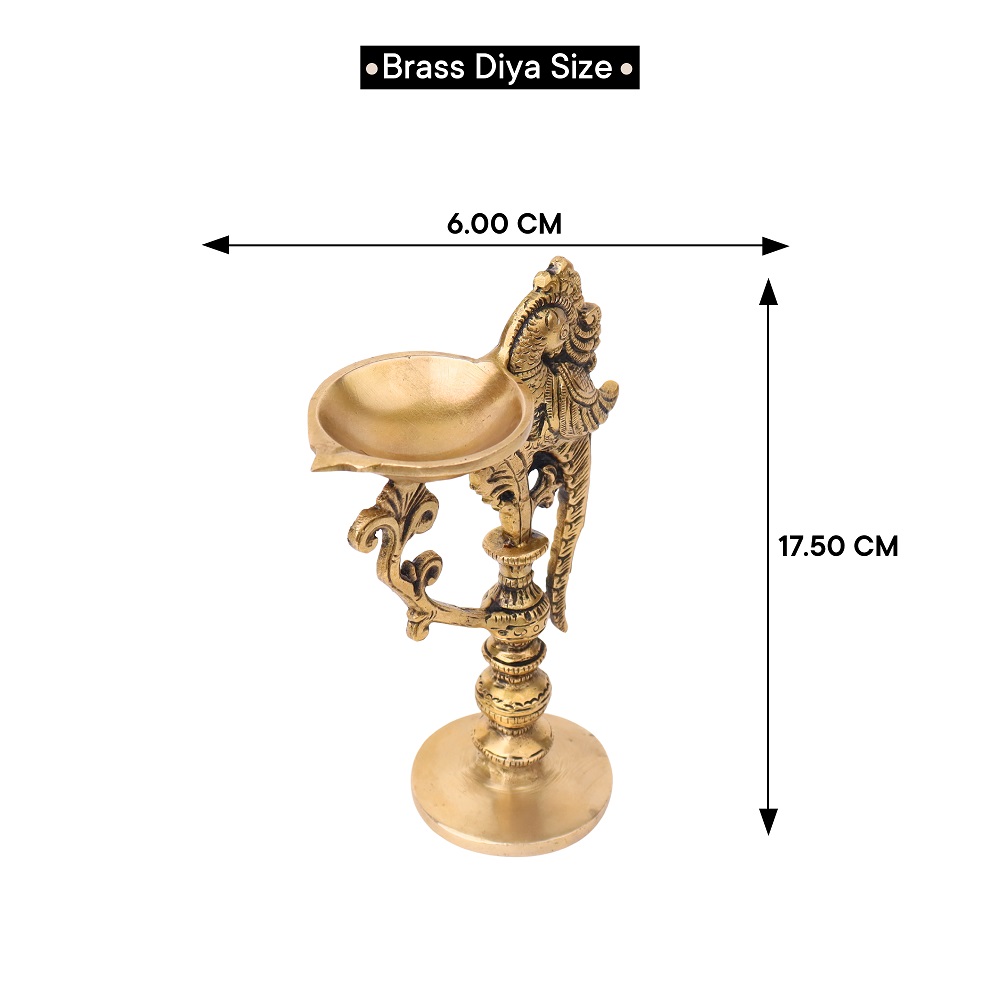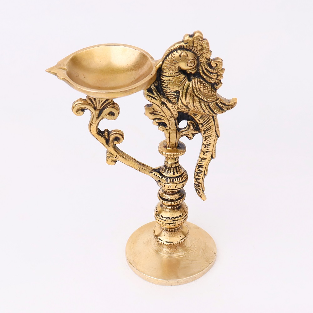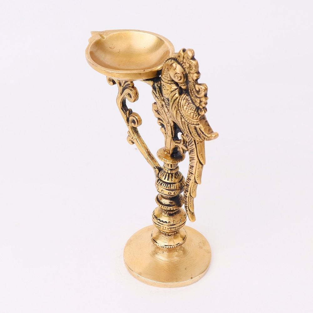 Brass Peacock Handle Diya With Stand