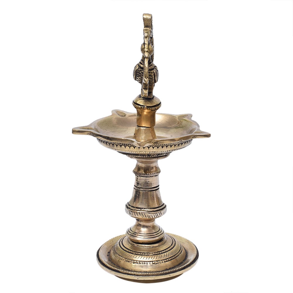 This majestic handmade brass Nilavilakku is crafted by skilled artisans from bronze or brass. Cotton wicks dipped in oil or ghee are typically used to light the lamp. The lamp can be lit in three different ways. In one, only one wick is lit and directed towards the deity or holy space, while in another, two wicks are lit in opposite directions. Following the lighting of the lamp, the art forms are performed. Many functions in Kerala and the rest of India are started by lighting Nilavilakku. These traditional lamps can be given as a wonderful anniversary, wedding, birthday, Diwali, Onam, Pongal, and other occasions. Ideal for worship as well as special occasions/festivals. Ideal for puja, auspicious occasions, and Indian festivals.