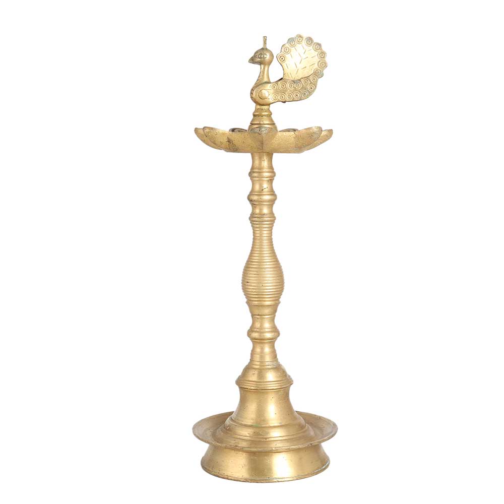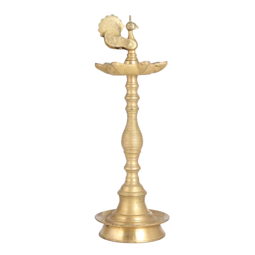 Vintage brass lamp with engraved peacock on the top is a real eye-catcher for your guests and visitors. It has a shiny golden finish that will match the decor of your home or office. You can place this lamp in your prayer room at home, office, hotel, restaurant or spa and light 7 jyots at a time using mustard oil or ghee with cotton wicks. Use this oil lamp on special occasions for an amazing experience. Buy this handmade oil lamp online and get hassle free delivery directly to your doorstep and gift this auspicious lamp to your loved ones on anniversary, wedding, birthday, corporate party, festival or any auspicious function.