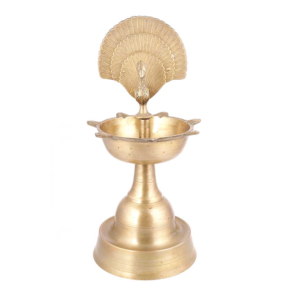 Brass Peacock Oil Lamp with Peacock Inside Circle