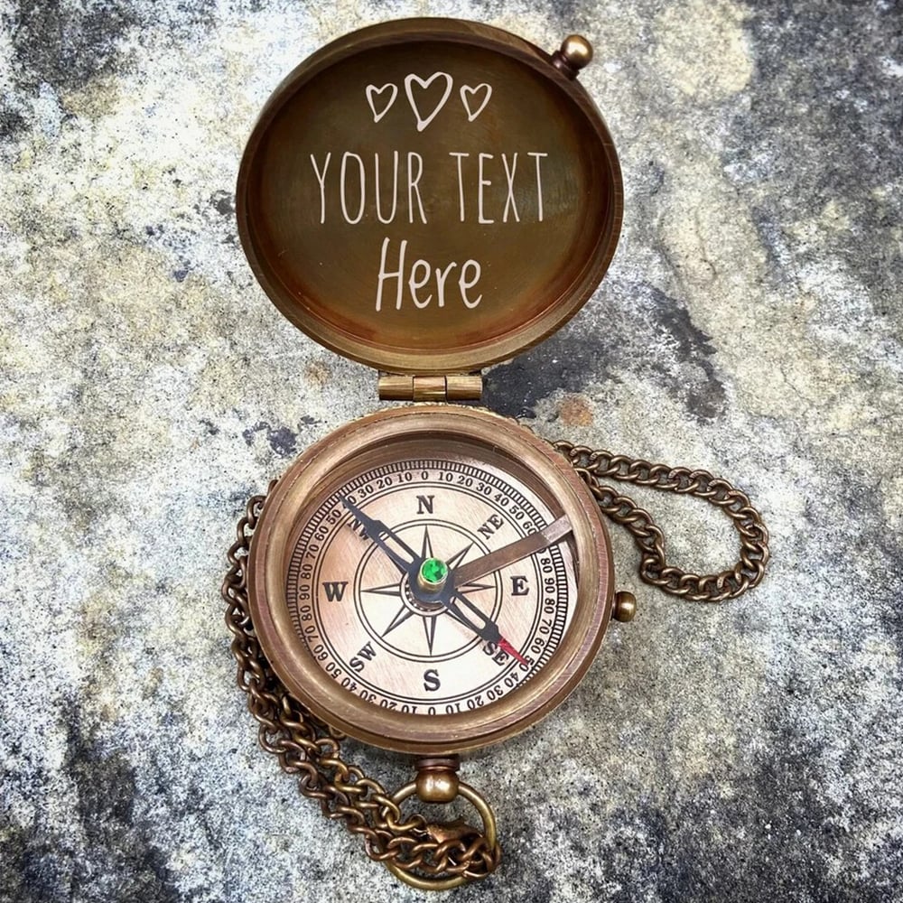 This brass pocket compass with engraved quote reflects the enduring connection between direction and intention. Crafted with care and aged naturally over time, it carries both practical heritage and emotional significance. Each piece features subtle variations, ensuring every compass is uniquely personal.