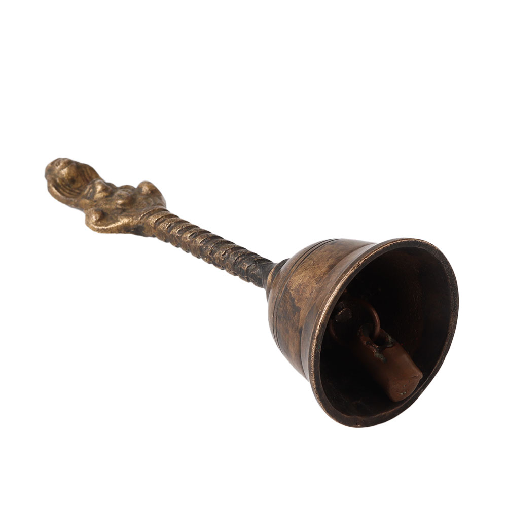 The hand held brass bell with god finial is a lovely addition to your pooja thali and temple and is incredibly sturdy and attractive. It is easily transformable into a lovely anniversary, wedding, Diwali, or Valentine's Day item. Utilize as a Pooja Accessory for Daily Pooja. Perfect for pujas, prayers, auspicious occasions, and festivals