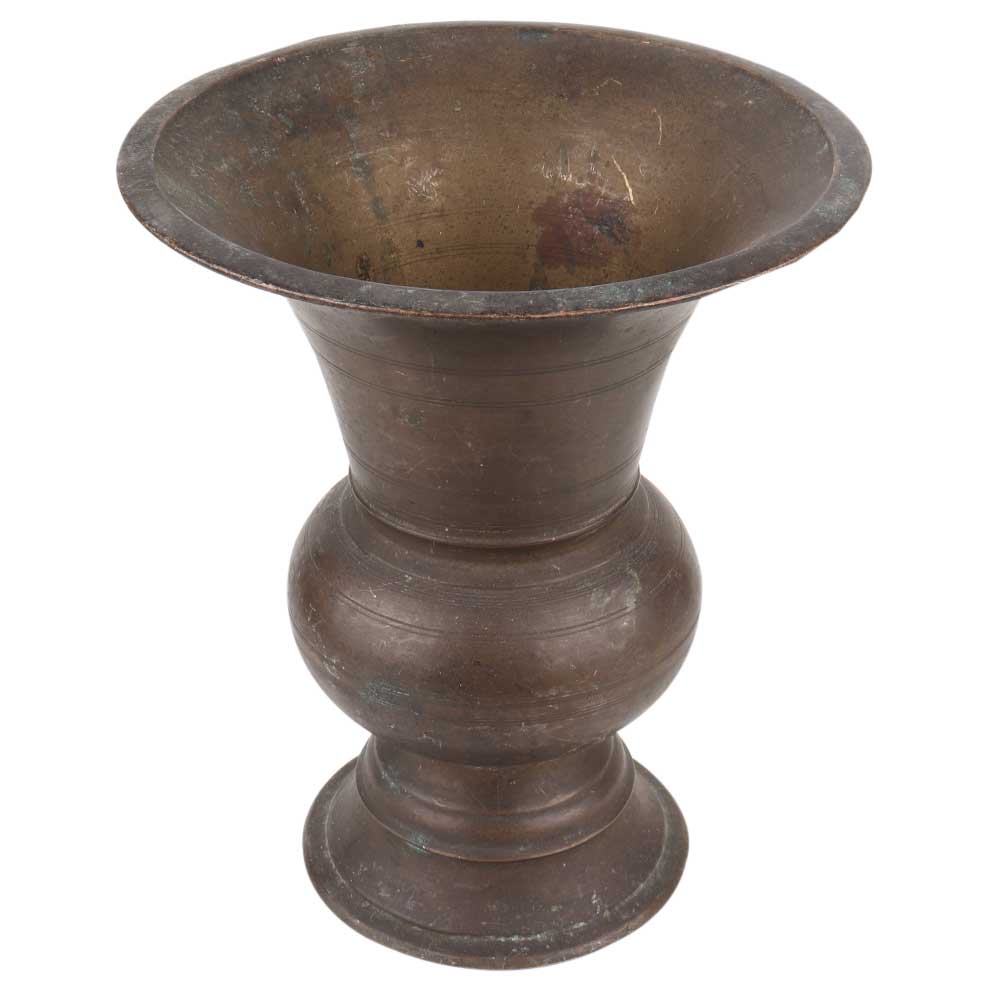Traditional Hand made Brass Pot with A wide Mouth with hour glass shape on a circular base stand. Use it as a flower pot, Planter , Showpiece for your lonely corners or simply gift it to your friends and relatives who are fond of collection vintage stuff.