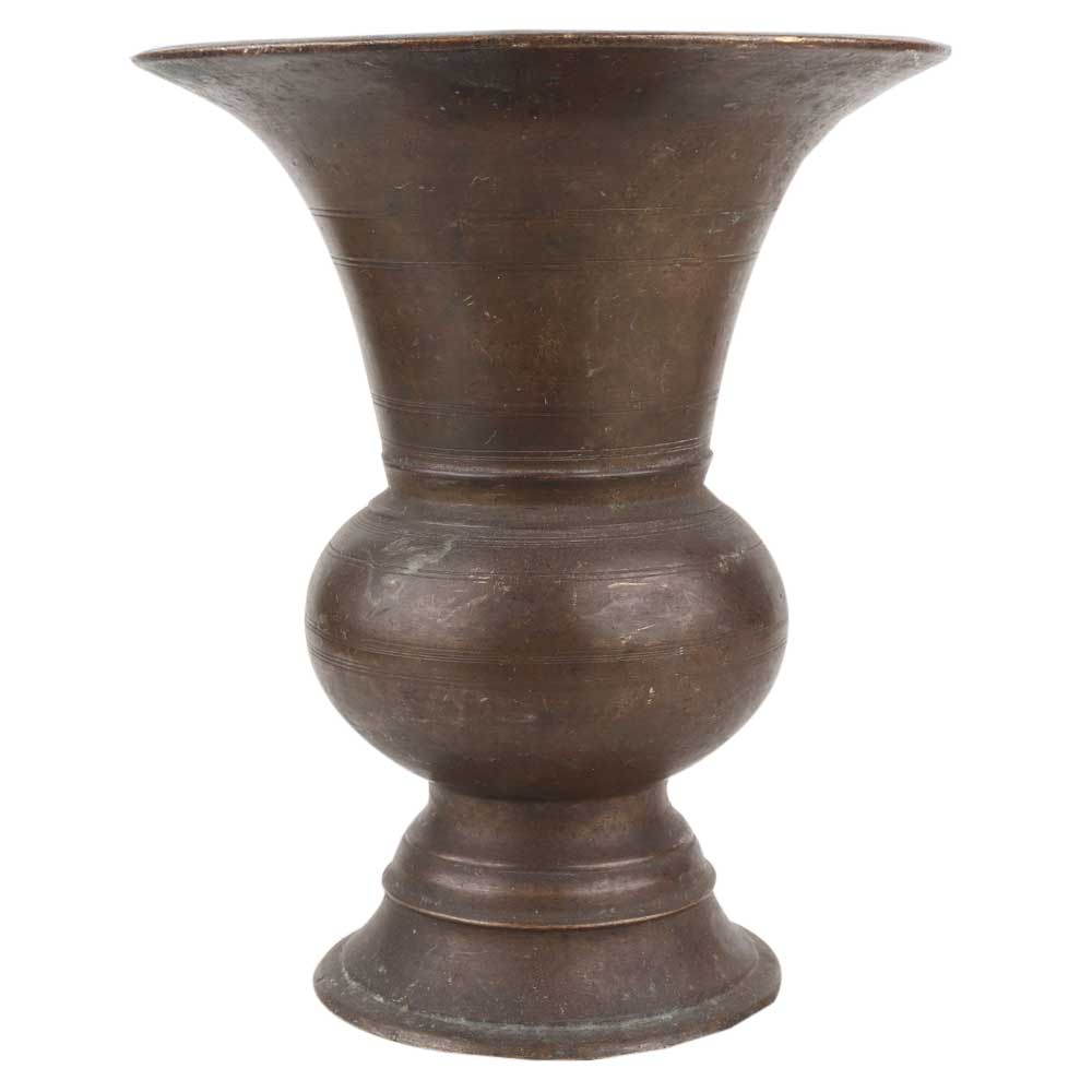 Brass Pot Or Vase With a Long and wide Mouth Centre Bulge Round Base