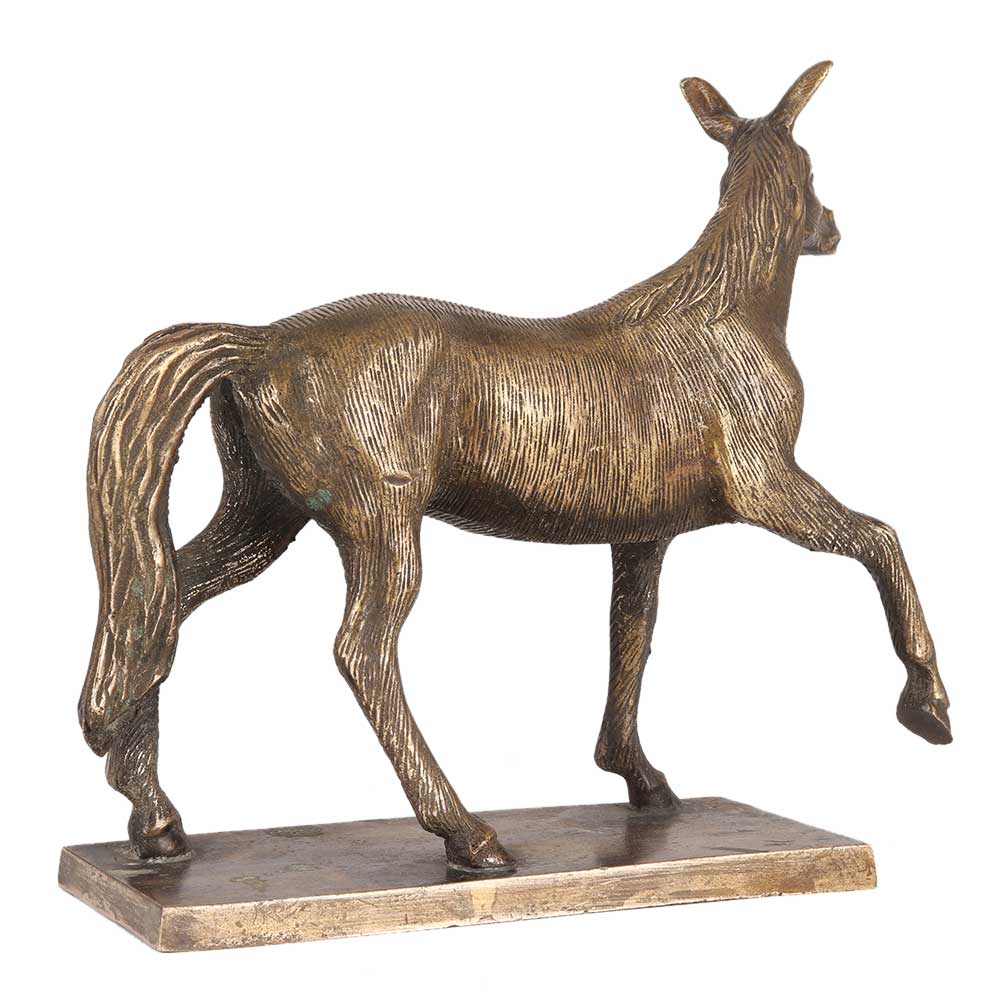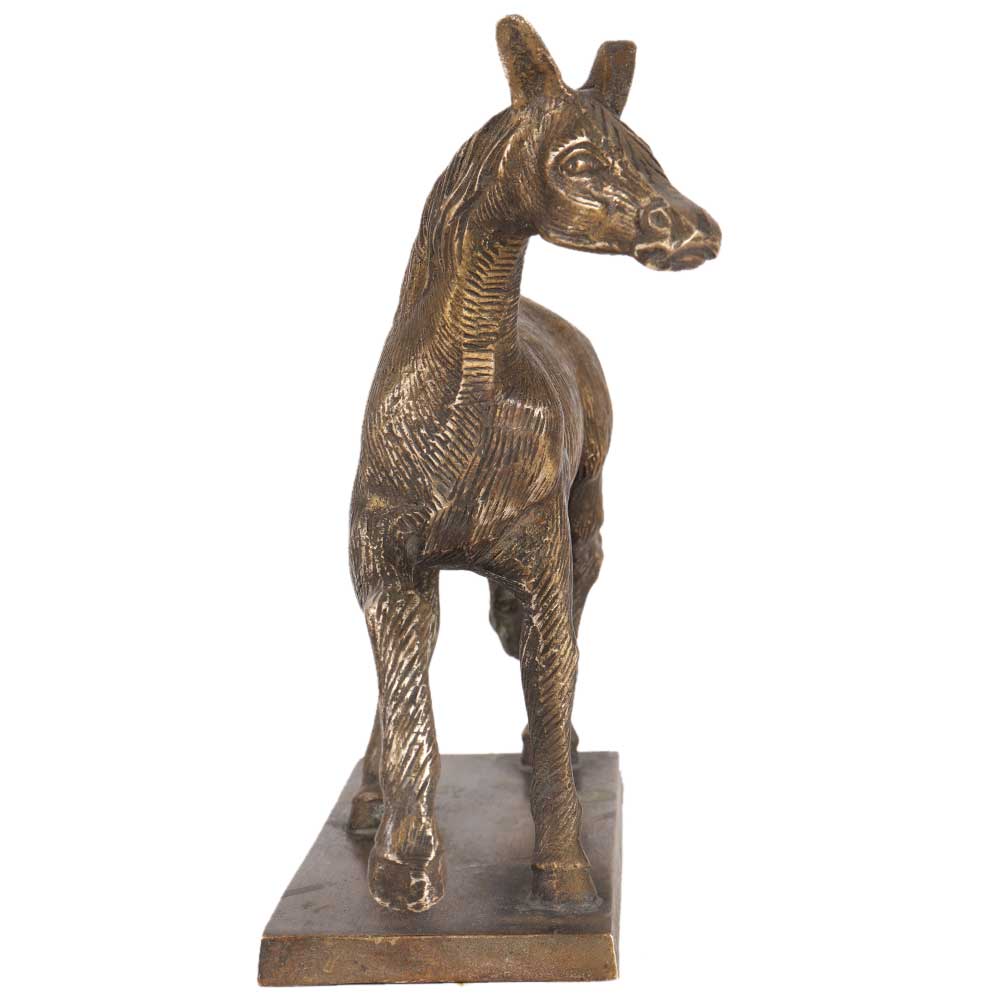 This magnificent brass horse statue is both majestic and royal  on a rectangular base. The sculptures seem to be in great antique state. The statue depicts a mature, muscular horse on a base. The ideal antique present for the horse enthusiast in your life! It would look fantastic in a library, on a desktop, or on a bookshelf!