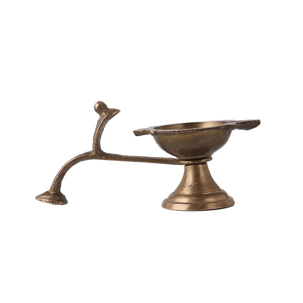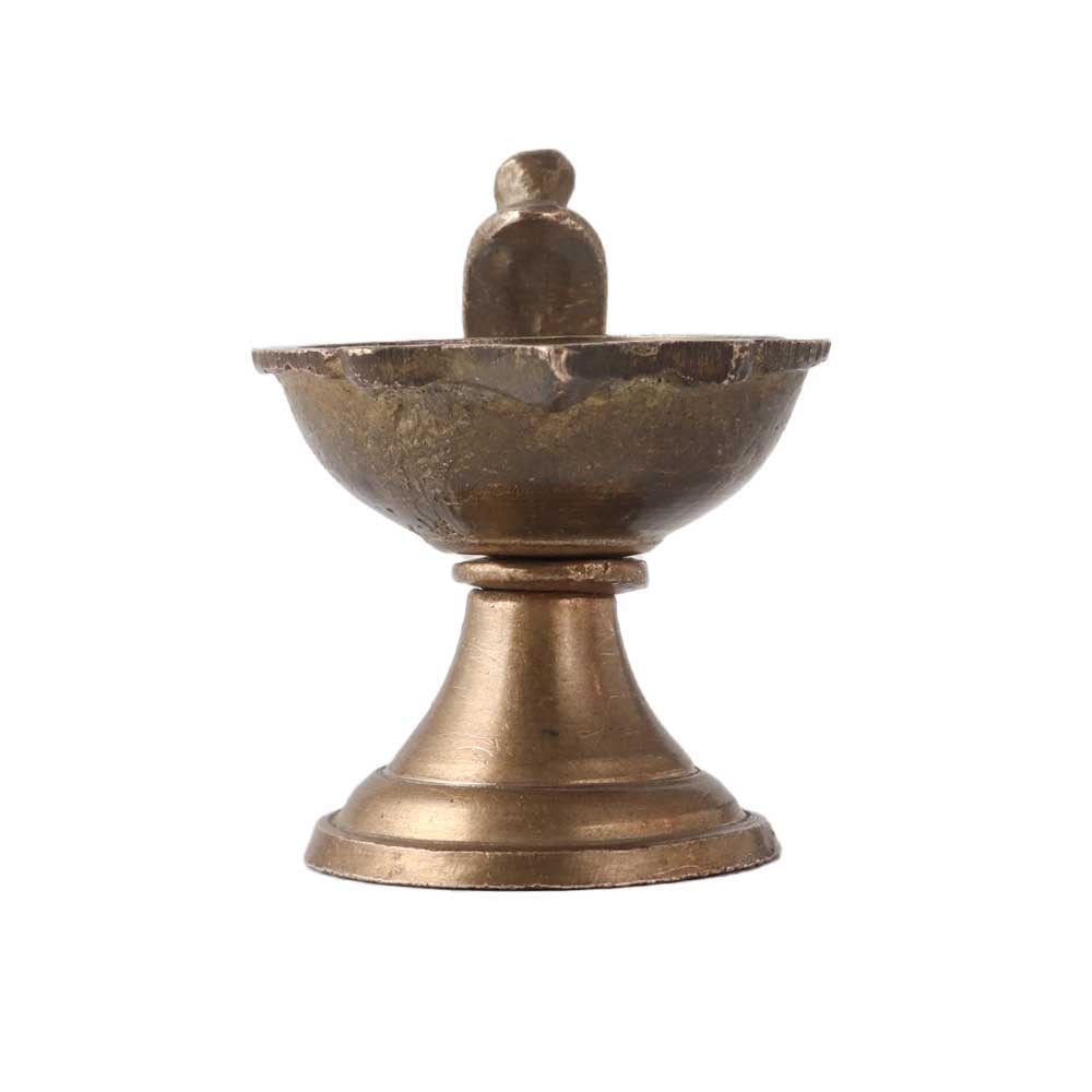 Brass Puja Diya With Snake Hood Handle