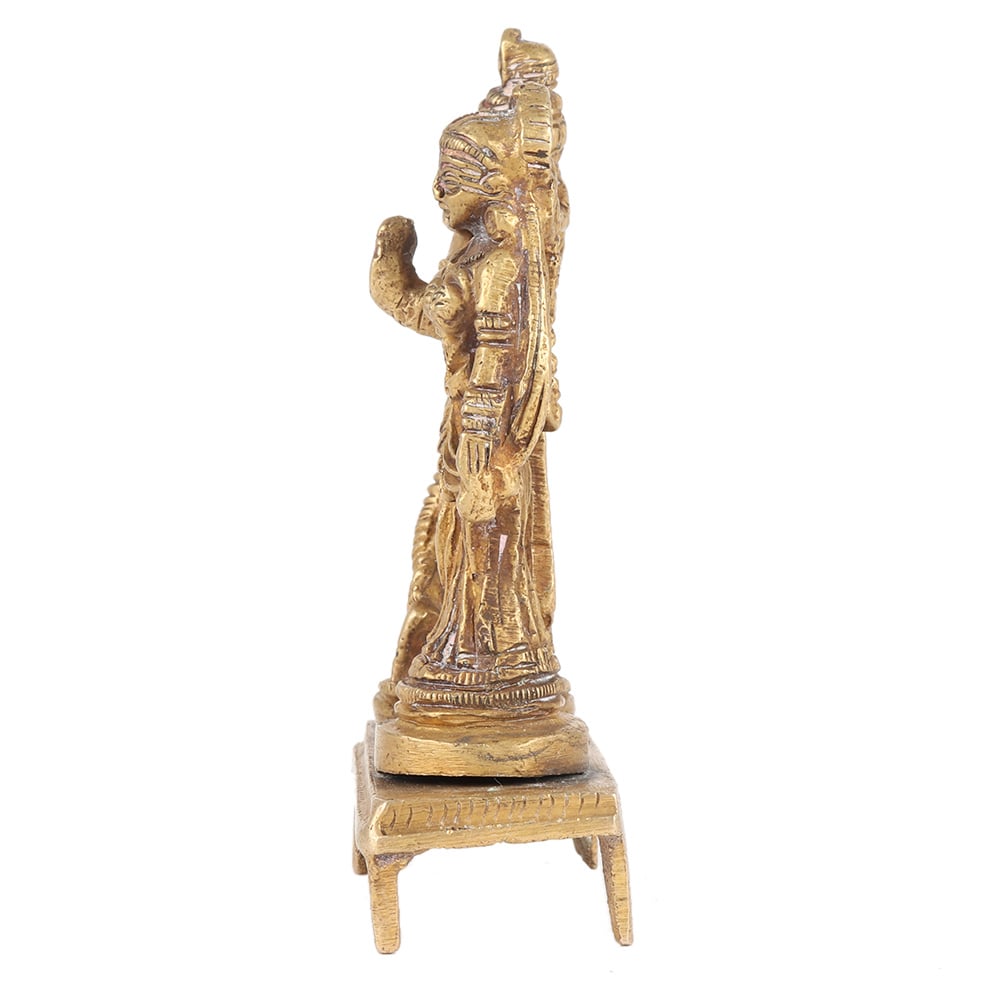The brass statue of Sri Radha Krishna is exquisitely handcrafted of Brass metal with an antique finish. It is accompanied by Radha Rani playing his Flute with two of his hands in Tri Vanki Pose (3 Bends) with a graceful grin on their holy faces. is ideal for home puja mandir , work place decor and a lovable gift for occasions at home, temple during religious festivals, Sri Krishna ejyanthi, Janmashtami, marriage and Ayosh Homam.