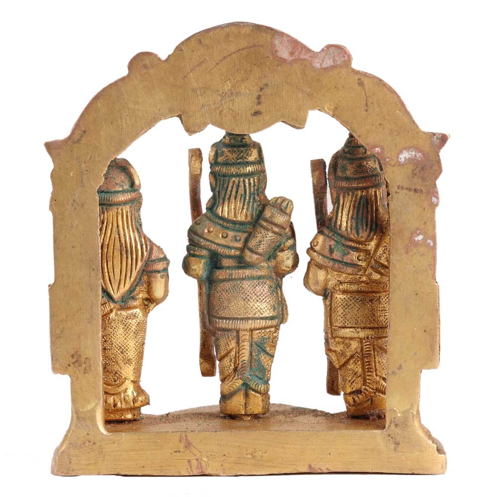 This brass statue of Ram Darbar, Lord Rama's Court, contains idols of Lord Rama, goddess Sita, brother Lakshman, and Hanuman Ji. This statue represents the marriage of a husband and wife, the brotherhood, the Master, and his Servant. This will go down in Indian history as an example of how to learn and honour these relationships. This statue is made entirely of pure brass metal. A gift for thousands of years for younger generations to see divinity and devotion.