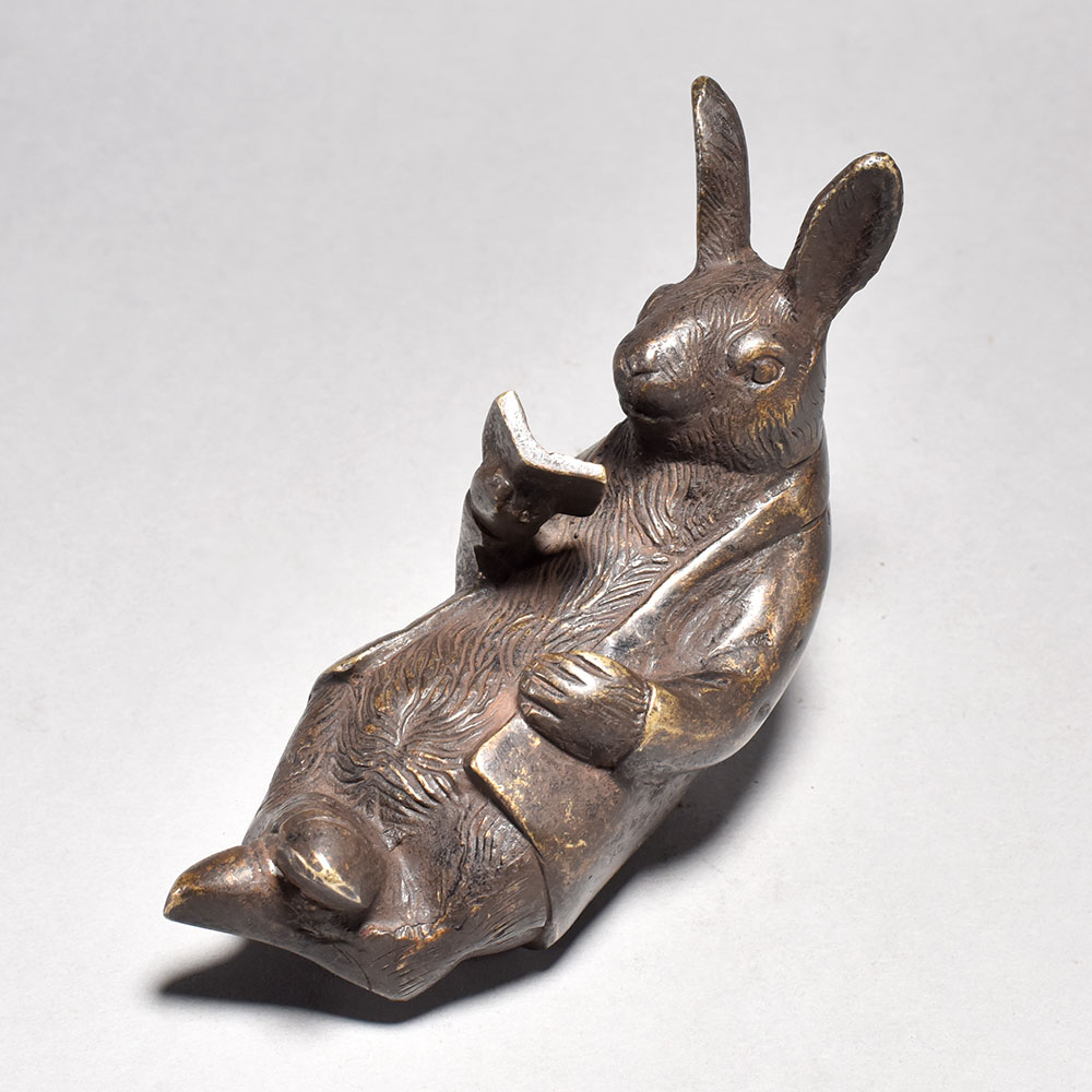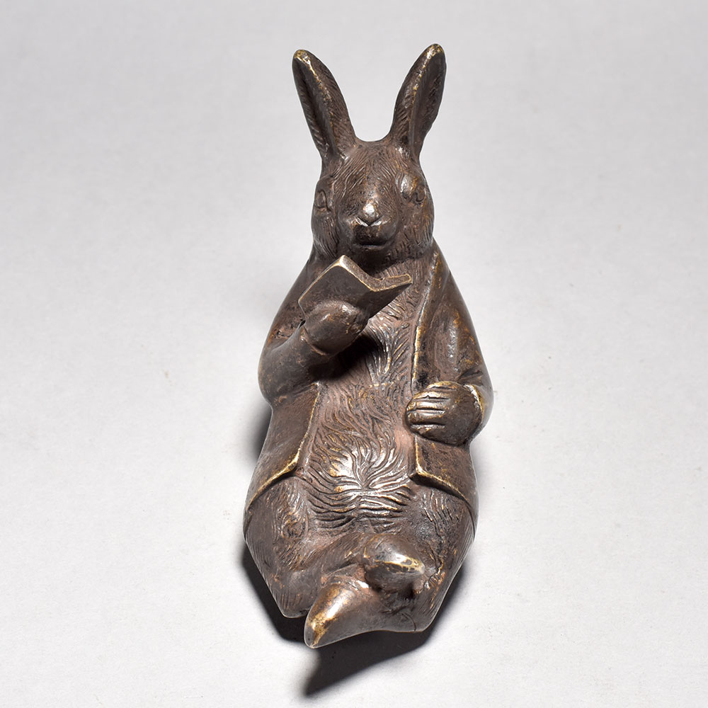 Discover the charming, whimsical world of the Brass Reading Rabbit Figurine. This captivating piece of English art brings a beloved literary moment to life in stunning detail.Lose yourself in the tranquil, imaginative scene this figurine creates. The Brass Reading Rabbit is a delightful addition to any bookshelf, desk, or side table, inviting you to pause, reflect, and get lost in the simple pleasure of reading. This charming rabbit figurine makes the perfect gift for book lovers, animal enthusiasts, and anyone who appreciates fine English craftsmanship and whimsical home decor. Display it proudly and let its captivating presence inspire moments of peaceful contemplation in your daily life. Crafted from high-quality brass Intricate, life-like details capture the rabbit's fur, the book, and its engrossed expression Depicts a rabbit in a relaxing, contemplative pose as it reads a book Exquisite English craftsmanship