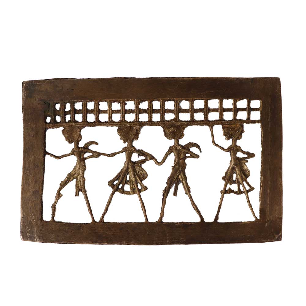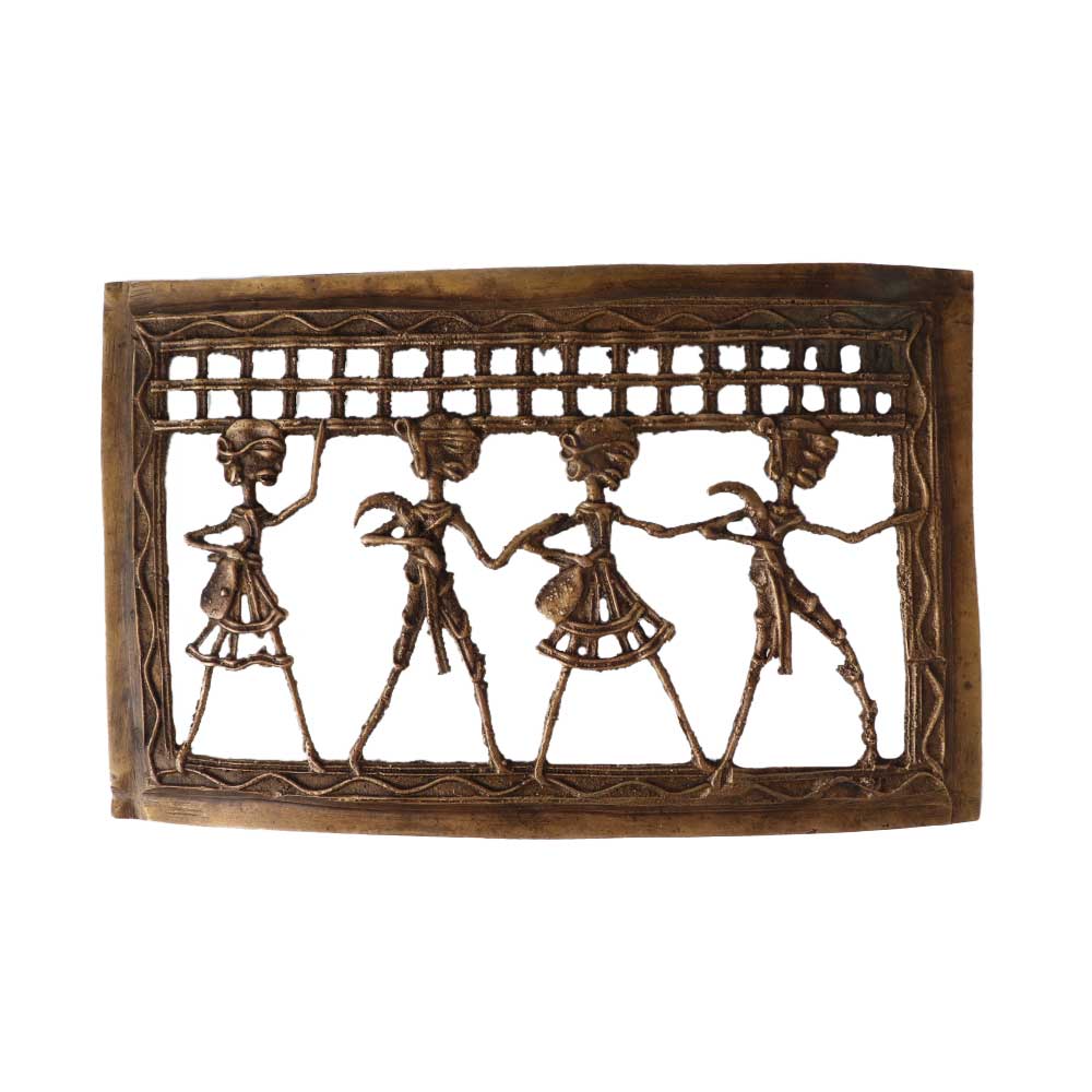 Brass Rectangle Wall Hanging Tribal Relief With Scene
