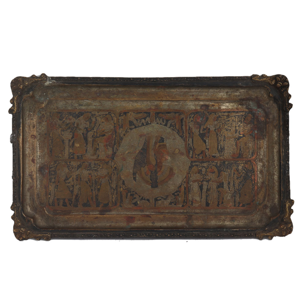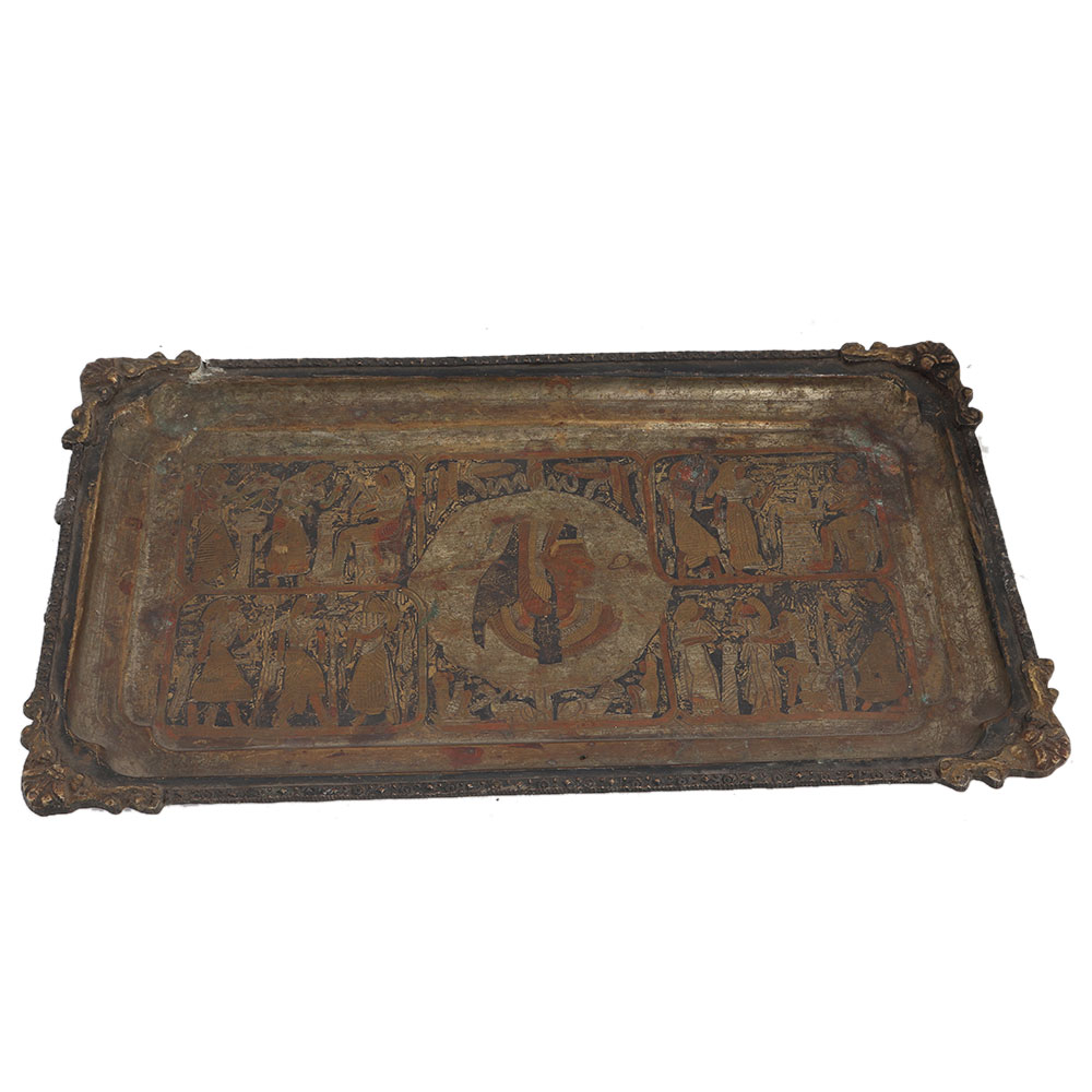 Brass Rectangular Tray Hand Painted Pharaoh And Chario Pictures