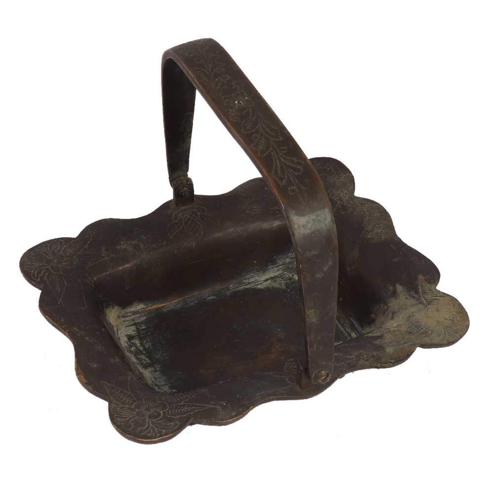 Brass Rectangular Tray With Handle And Scalloped Edges
