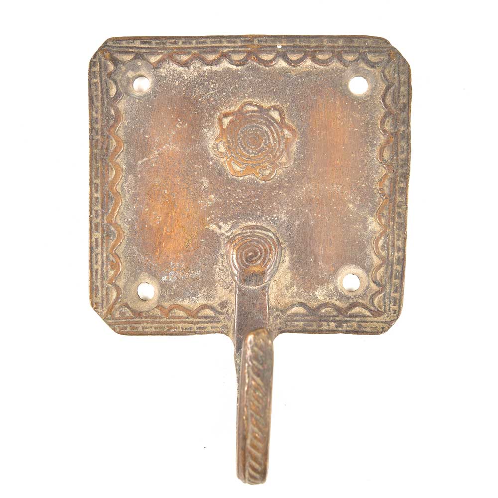 Brass Red Squared Floral Design Single Wall Hooks