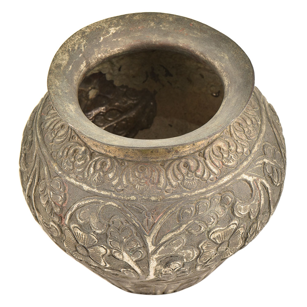• Brass Repousse Floral Pattern And Vines Handmade Pot Or Vase
