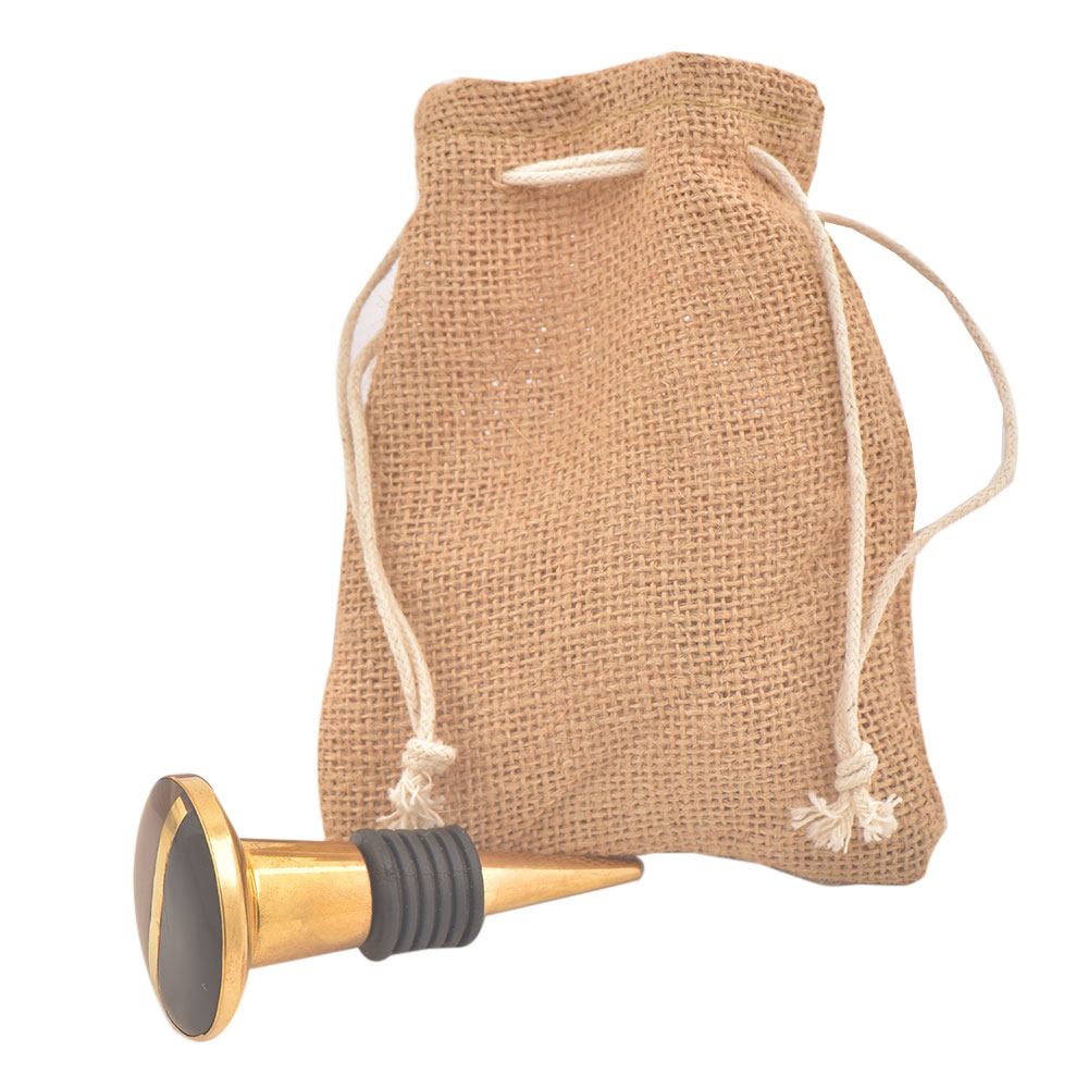 Brass Resin Wine Stopper. Zinc Alloy Wine Bottle Stopper with Attractive Jute Bag Packaging.