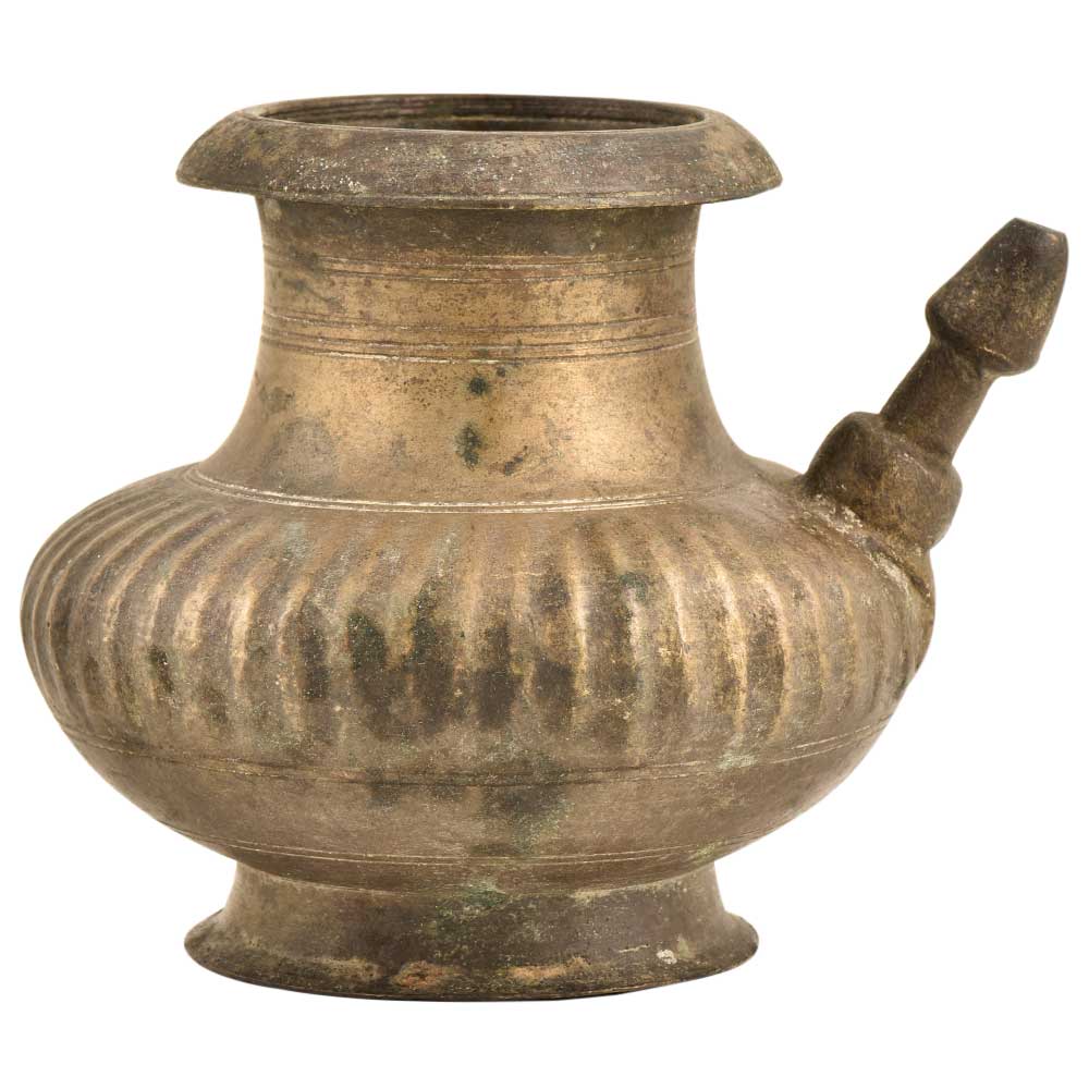 • Brass Ribbed Bulbous Form Holy Water Pot With Spout
