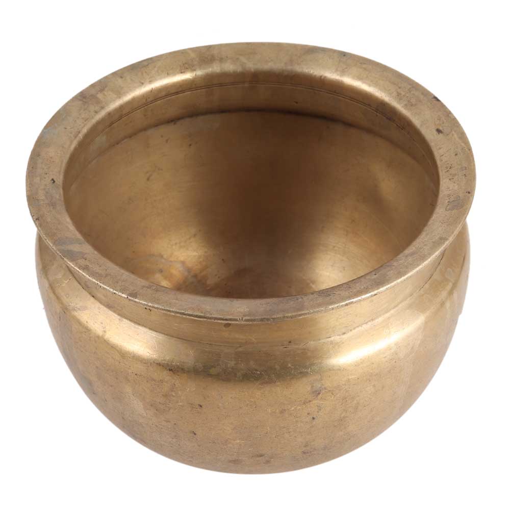 South Indian serveware with a bulbous spherical bottom made of brass. It was previously employed to make rice that had a nice spherical bottom. Give your dining table and kitchen an authentically traditional look. Use it as a planter pot, flower vase, hotel lobby décor, or gift for loved ones.
