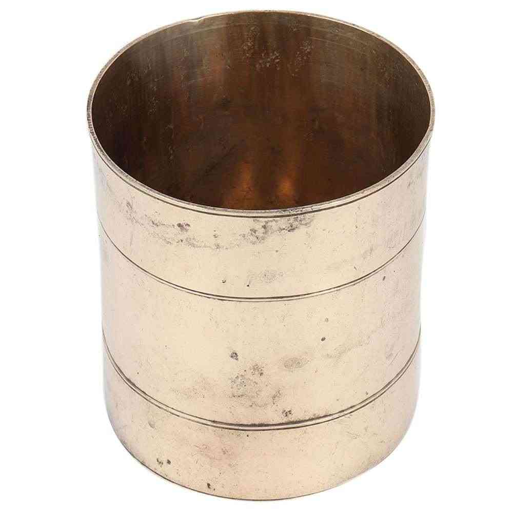 Rice grains are measured in this handcrafted brass container or cup. It's also employed in many kinds of family rituals and holidays. The shape and design are traditional and antique. Local craftspeople handcraft the item out of pure brass.