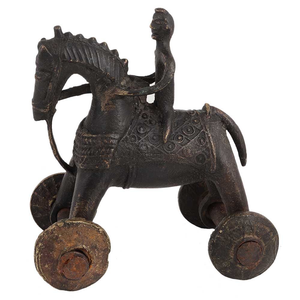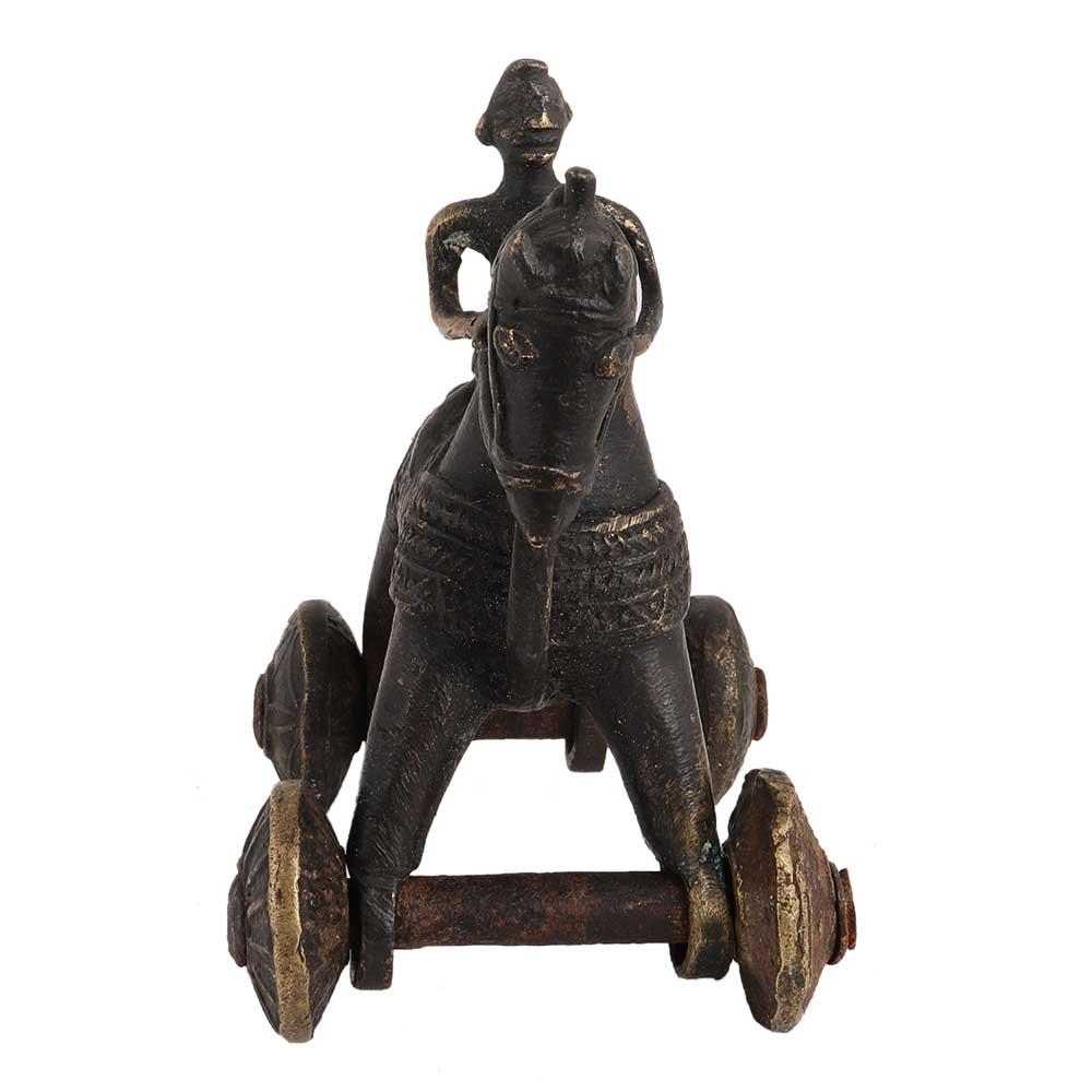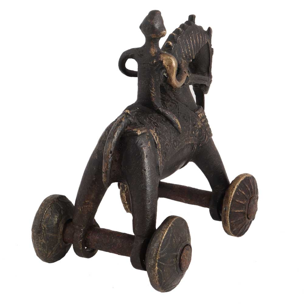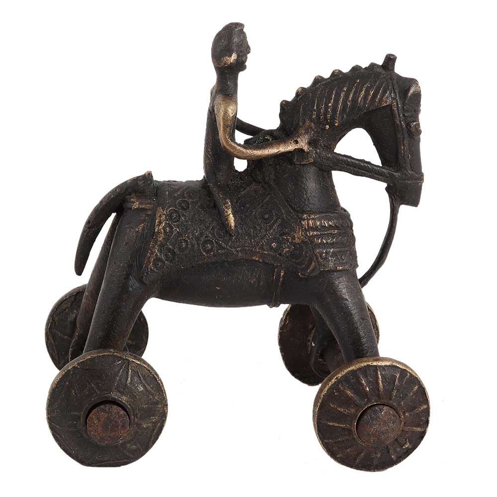 Brass Rider On Horse Temple Toy Home Decoration used to occupy children while their parents were in temple. The originals were mostly made of bronze with ornate Saddle. Wedding toy, birthday gift,anniversay gift, Home, School and hotel decoration, table display and a very interesting gift for your near and dear ones.