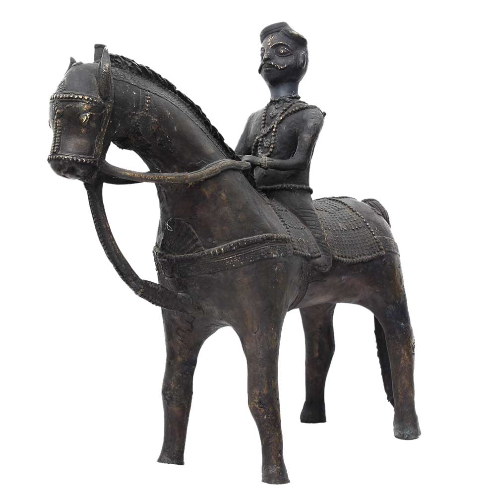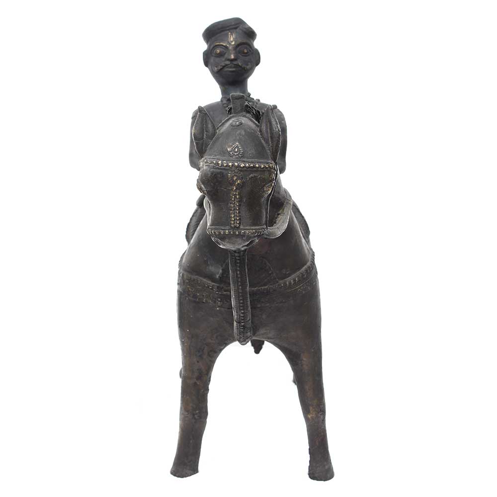 • Brass Rider With Horse Figurine Statue In Patina Finish