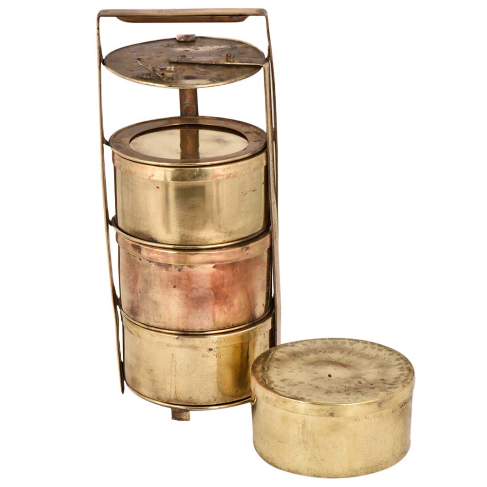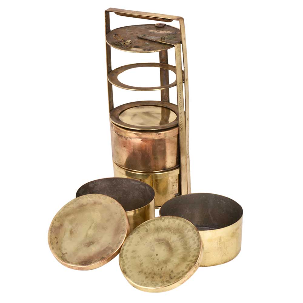 • Brass Ring Tiffin Box With Four Containers and metal Frame
