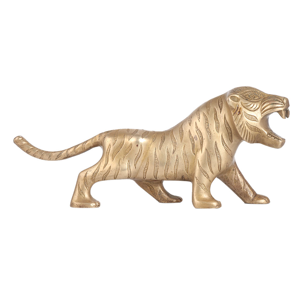 Brass Roaring Tiger Statue in Indian Art