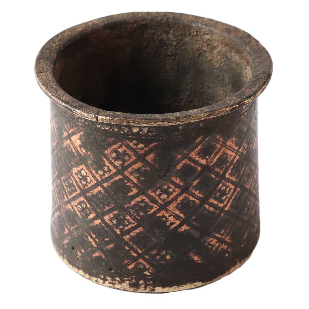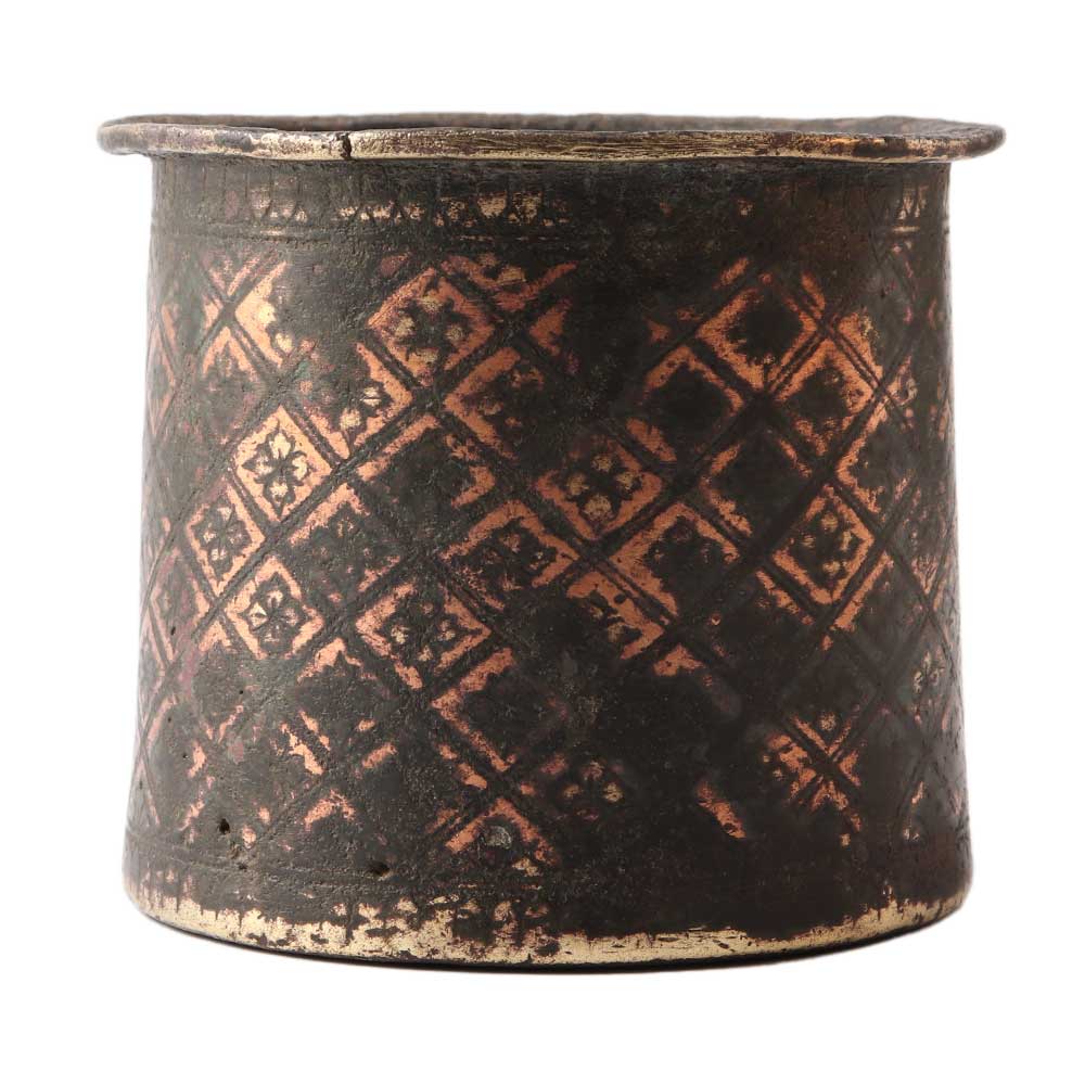 Handmade brass panch patra cup has engraved geometric design and comes in an old patina finish. Both pooja and havan can be performed with the brass Panchpatra cup. It can be applied to both mundane tasks and auspicious ones, such as general omnipotence.