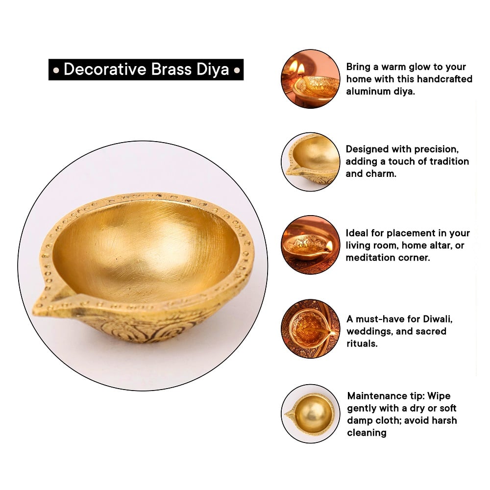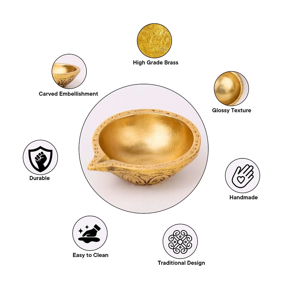 Light up your home with this Brass Round Shaped Oil Diya, a graceful symbol of devotion and positivity. Crafted from pure brass with a polished golden finish, its smooth round design reflects simplicity and timeless tradition. Compact in size yet radiant in glow, this diya is perfect for both daily rituals and Diwali celebrations, adding sacred warmth to any space.